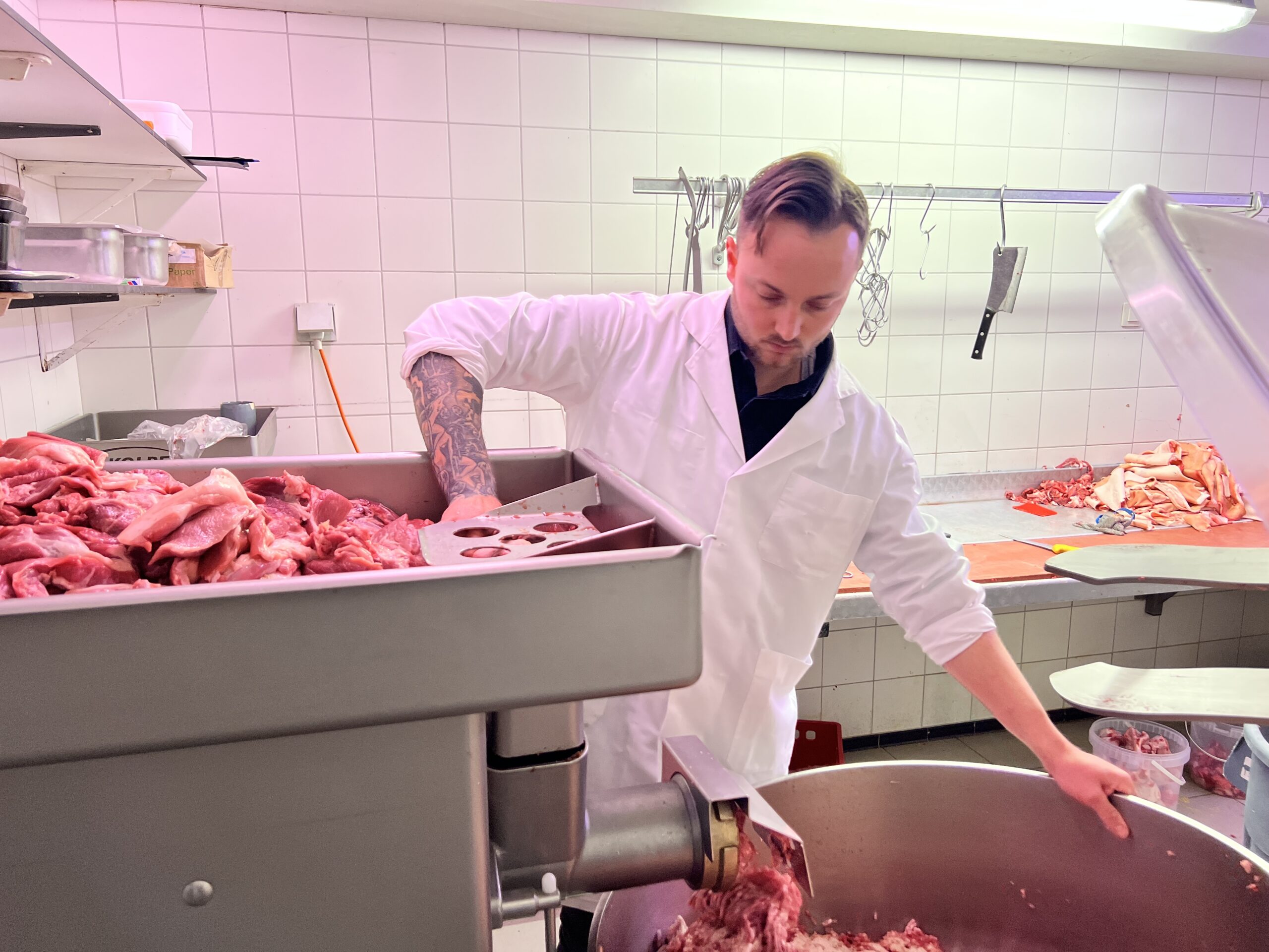 “We werken zoveel mogelijk ambachtelijk en maken nog veel producten zelf. We soigneren onze klanten, die soms van ver komen voor onze droge worsten, trippen, gehakt, paté. Sommigen, die verhuisd zijn naar de kust, komen hier zelfs nog eens binnen.”