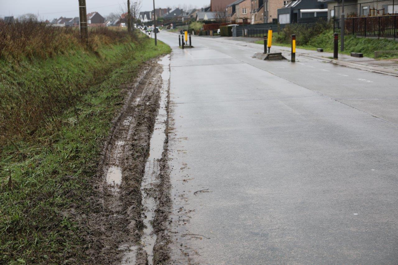 “We zijn donderdagavond 20.25 uur”, schreef Kurt van den driessche ons. “Heel de Aardeweg staat van het begin tot het einde en wellicht tot veel verder geblokkeerd. Er heeft zich weer een voertuig vastgereden in de modder naast een asverschuiving omdat iemand het vertikte de voorrangsregels te respecteren.”