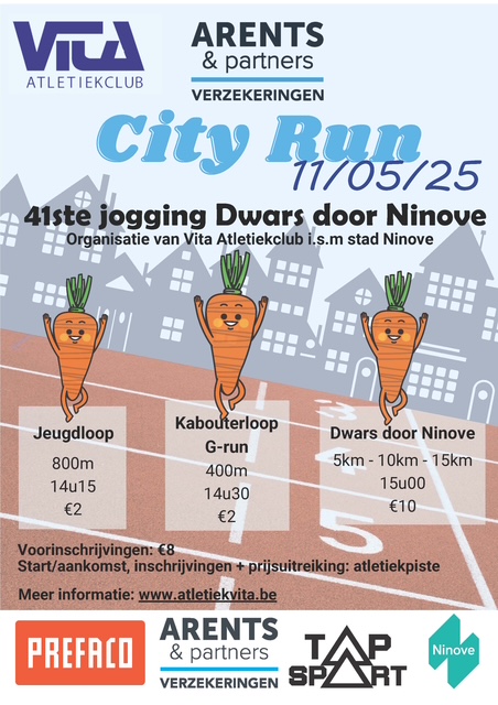 NINOVE – De ‘Arents & Partners Verzekeringen City Run’ heeft zondag 11 mei plaats.