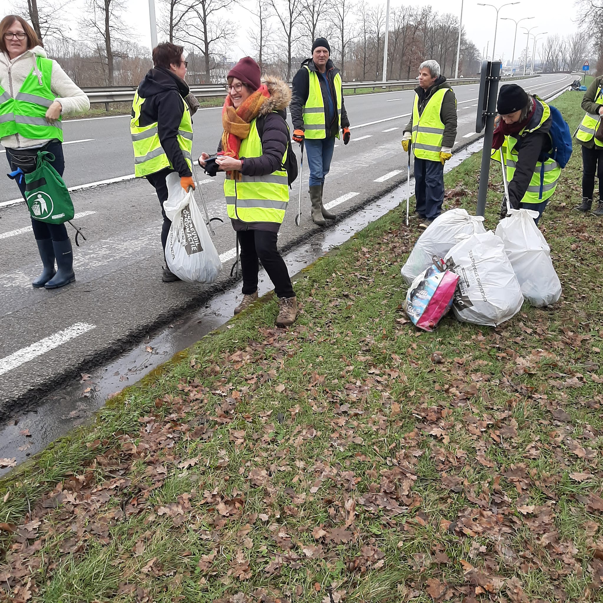 De vrijwilligersgroep nam zondag met 13 zwerfvuiljagers nog eens de Koning Boudewijnlaan en de vissersplek aan de Denderbrug onder handen.