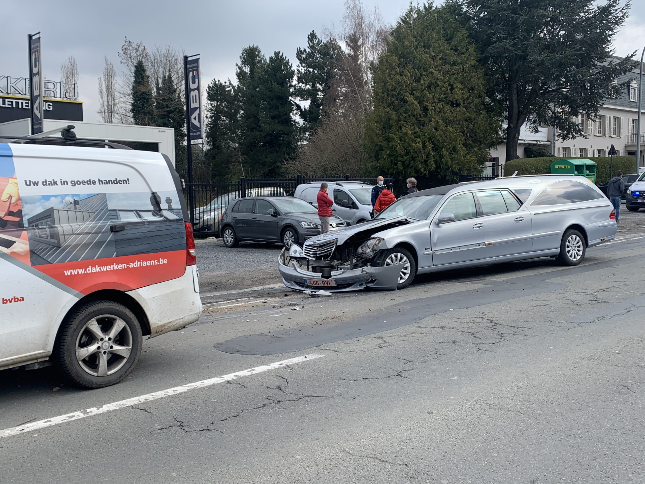 MEERBEKE – De ceremoniewagen van een rouwcentrum is donderdag 25 maart op de Halsesteenweg rond de middag achteraan ingereden op een bestelwagen.