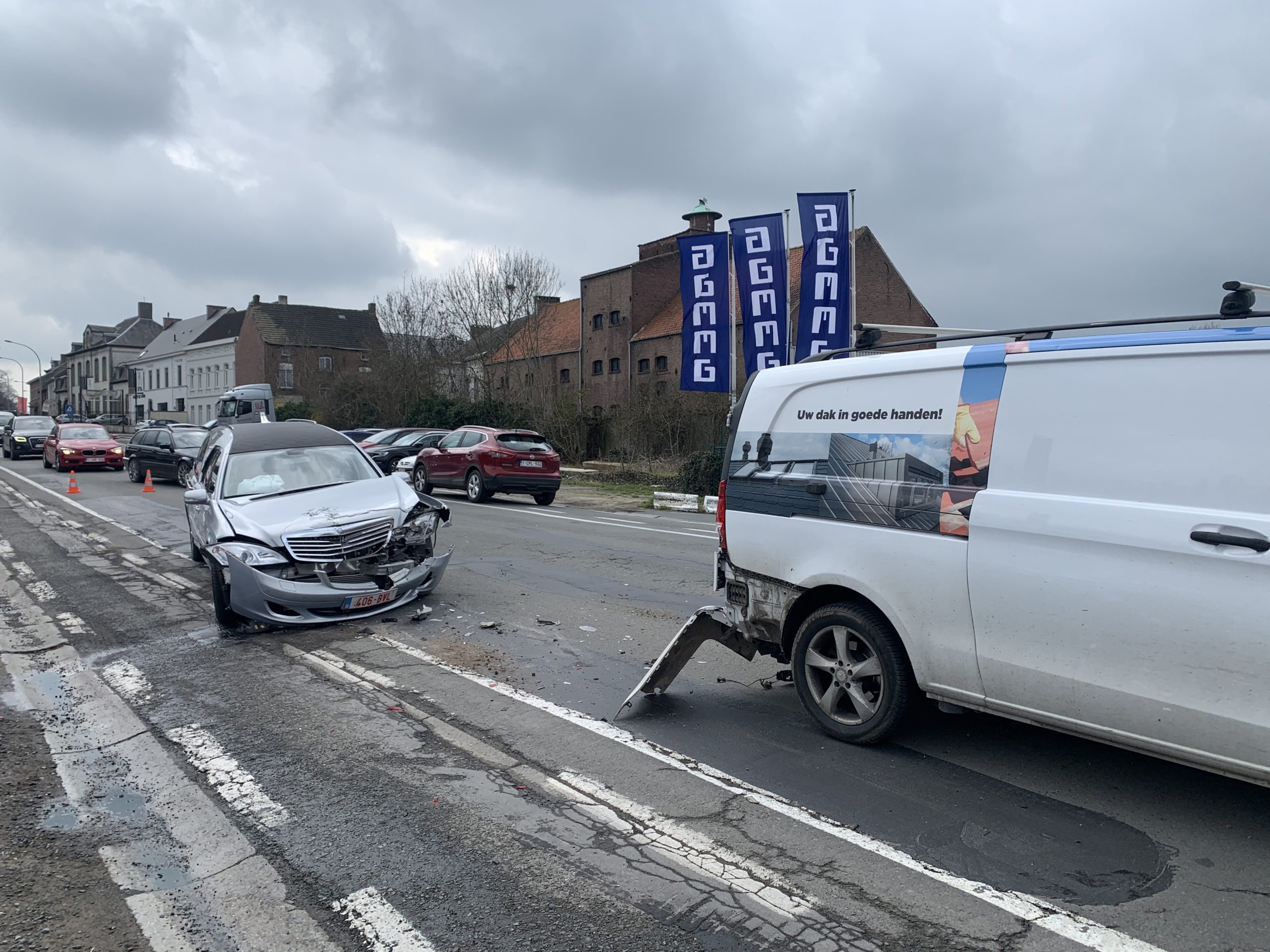 Het ongeval zorgde op het middaguur vrijwel onmiddellijk voor een lange file op de Halsesteenweg richting kruispunt Tramstatie.