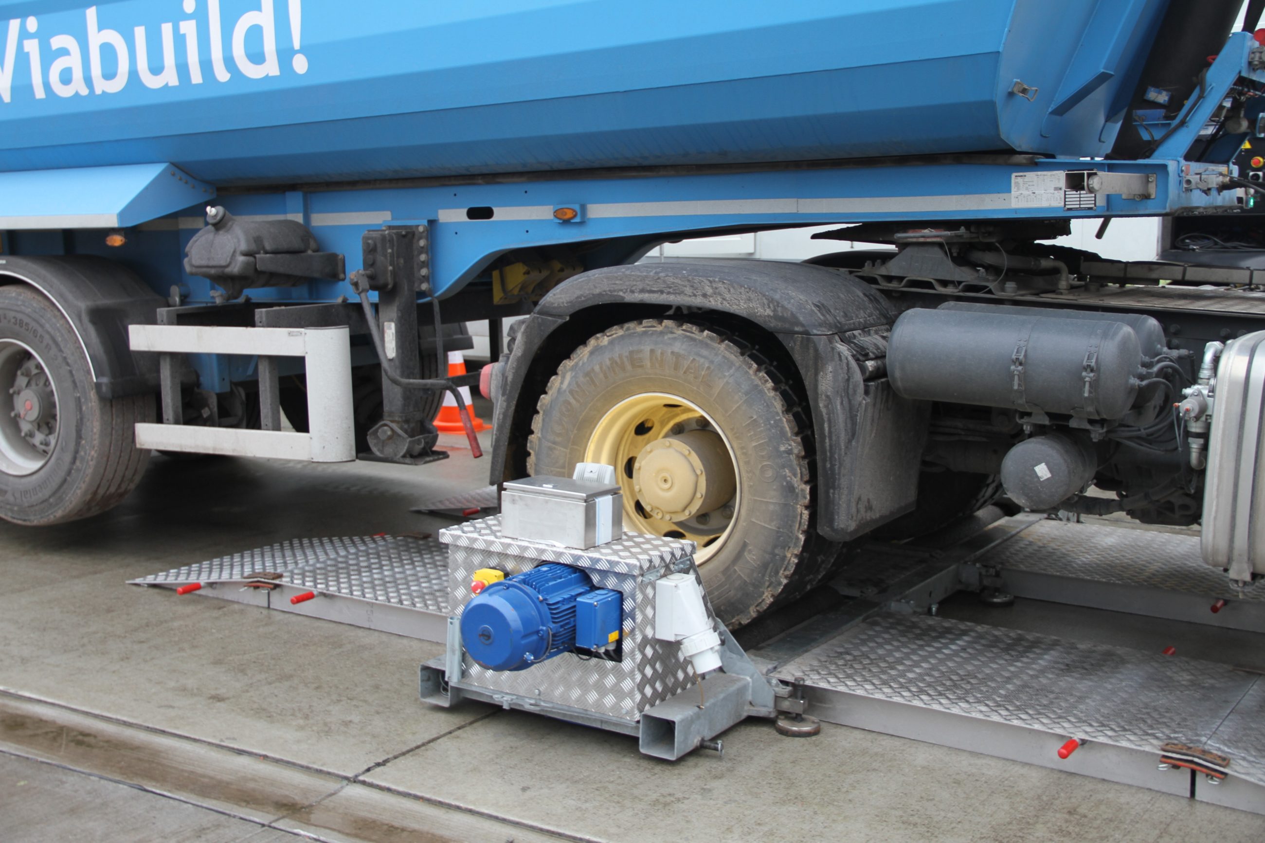 # Ninove -Woensdag vond een grootschalige controle plaats van vrachtwagens aan de terreinnen van de weeginstallatie op de Tabakslaan in Appelterre. De mobiele technische controleinstallatie die er werd opgesteld controleert de staat van de vrachtwagens oa per as, remmen, banden en dergelijke. Het is de wegeninspectie van de Vlaamse Gemeenschap die samen met de politie instond voor de controles. Verschillende vrachtwagens werden van de weg gehaald en onderworpen aan een controle. Foto’s Giovanni Neckebroeck
