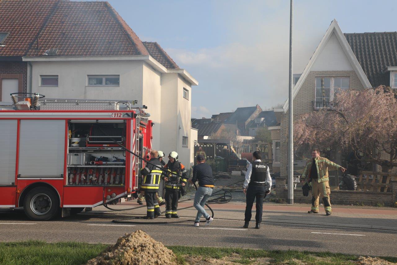De bewoners en buren waren reeds met de tuinslang begonnen met de blussingwerken bij aankomst van de brandweer.