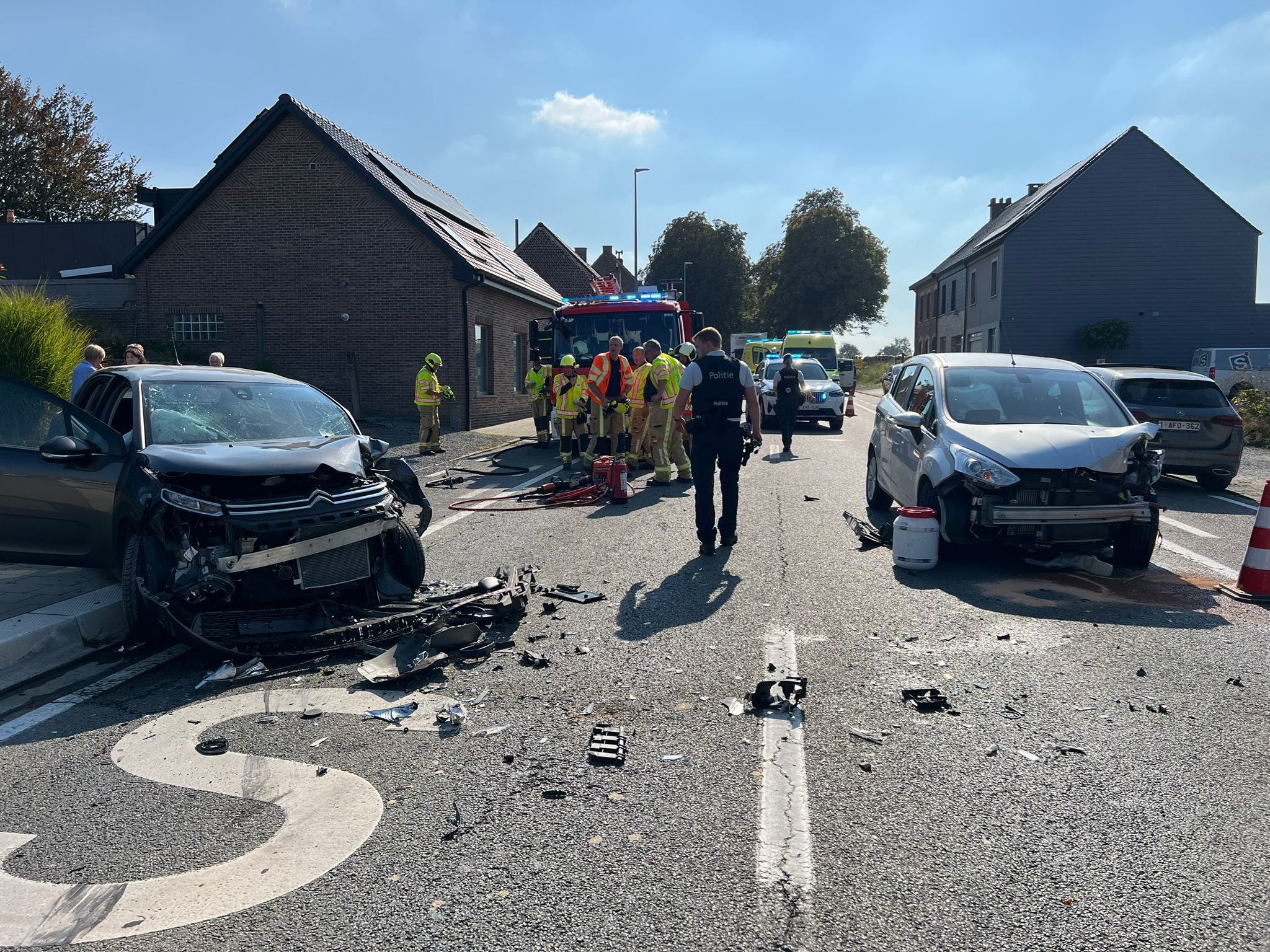 De aanrijdende wagen tolde door de botsing om zijn as. De chauffeur en de passagier van het aangereden voertuig zaten geklemd in hun wagen en moesten door de brandweer van de zone Zuid-Oost worden bevrijd. In totaal zijn drie personen gewond afgevoerd naar het ziekenhuis.