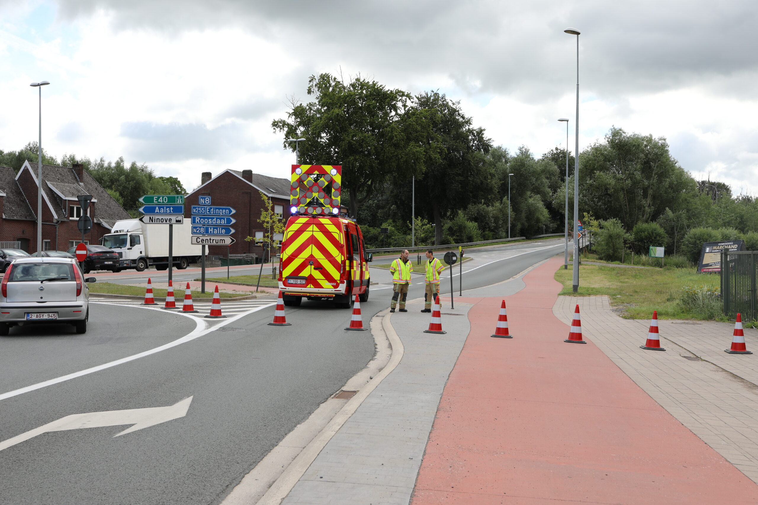 De lokale politie van Ninove deed de vaststellingen op de plaats van het ongeluk. Ze sloot de Elisabethlaan tussen Den Dollar en het kruispunt met de Centrumlaan tijdelijk af en leidde het verkeer om.