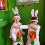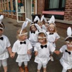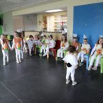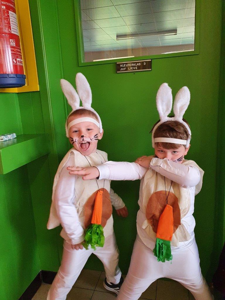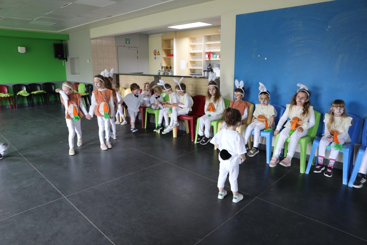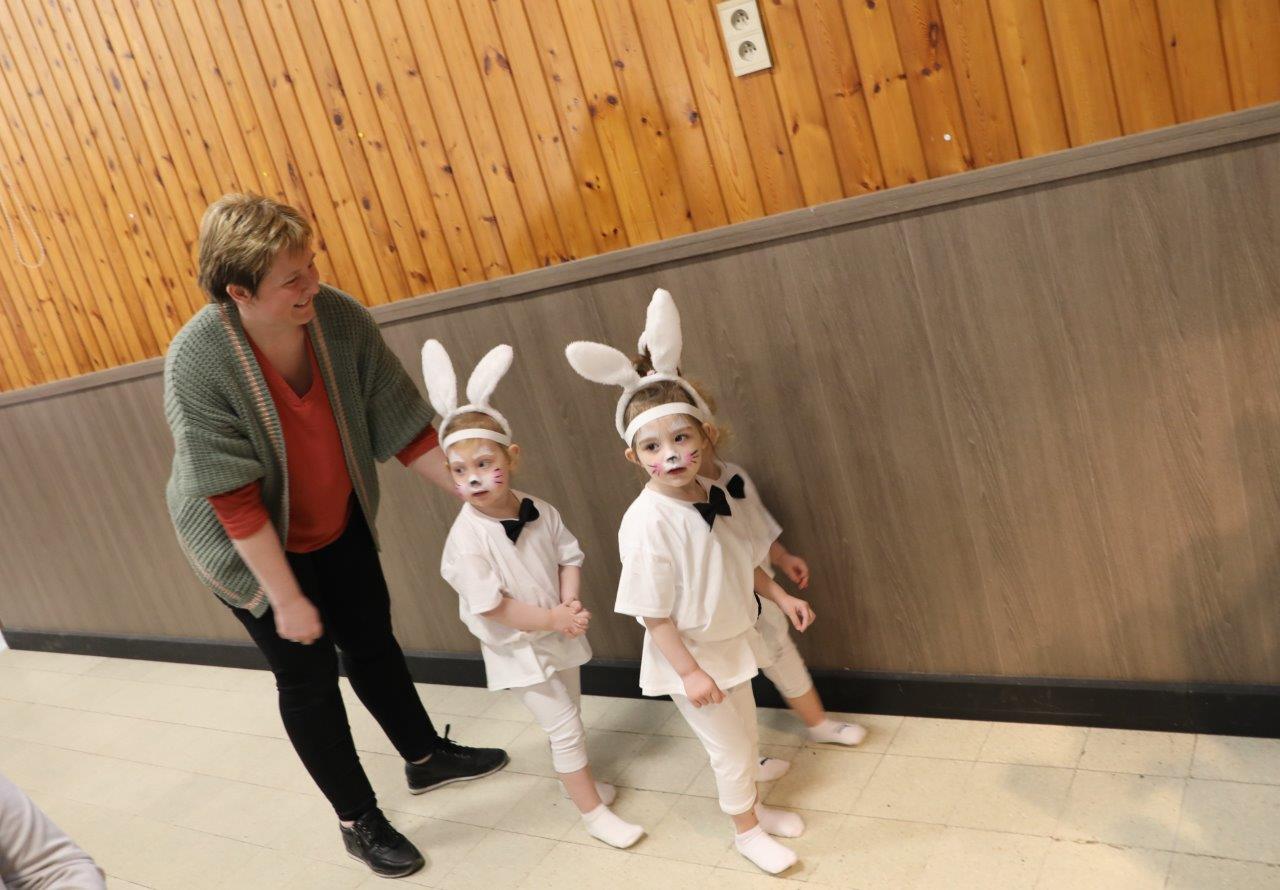 De grote hazen uit de derde kleuterklas hadden meer zin in een feestje en verloren de wedstrijd uit het oog. Er werd gedanst op klassieke muziek, polka en stoere techno.