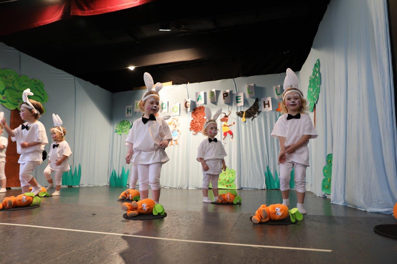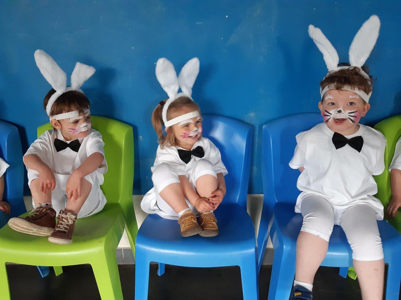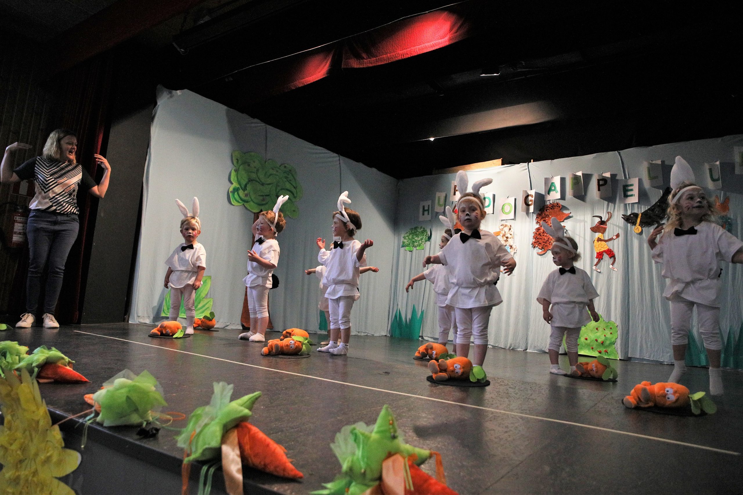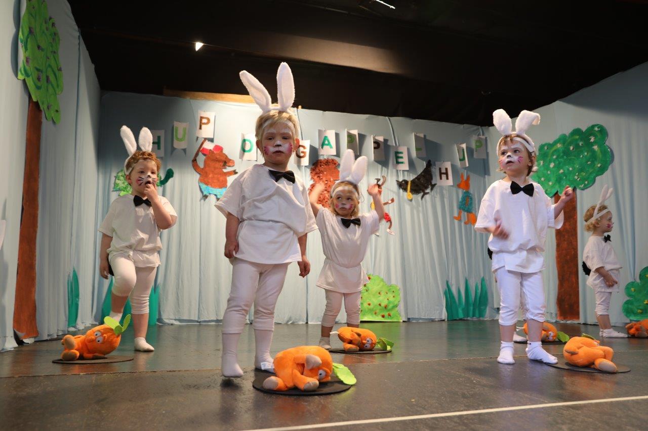 De peuters openden de voorstelling als schattige haasjes, die aan het turnen gingen.