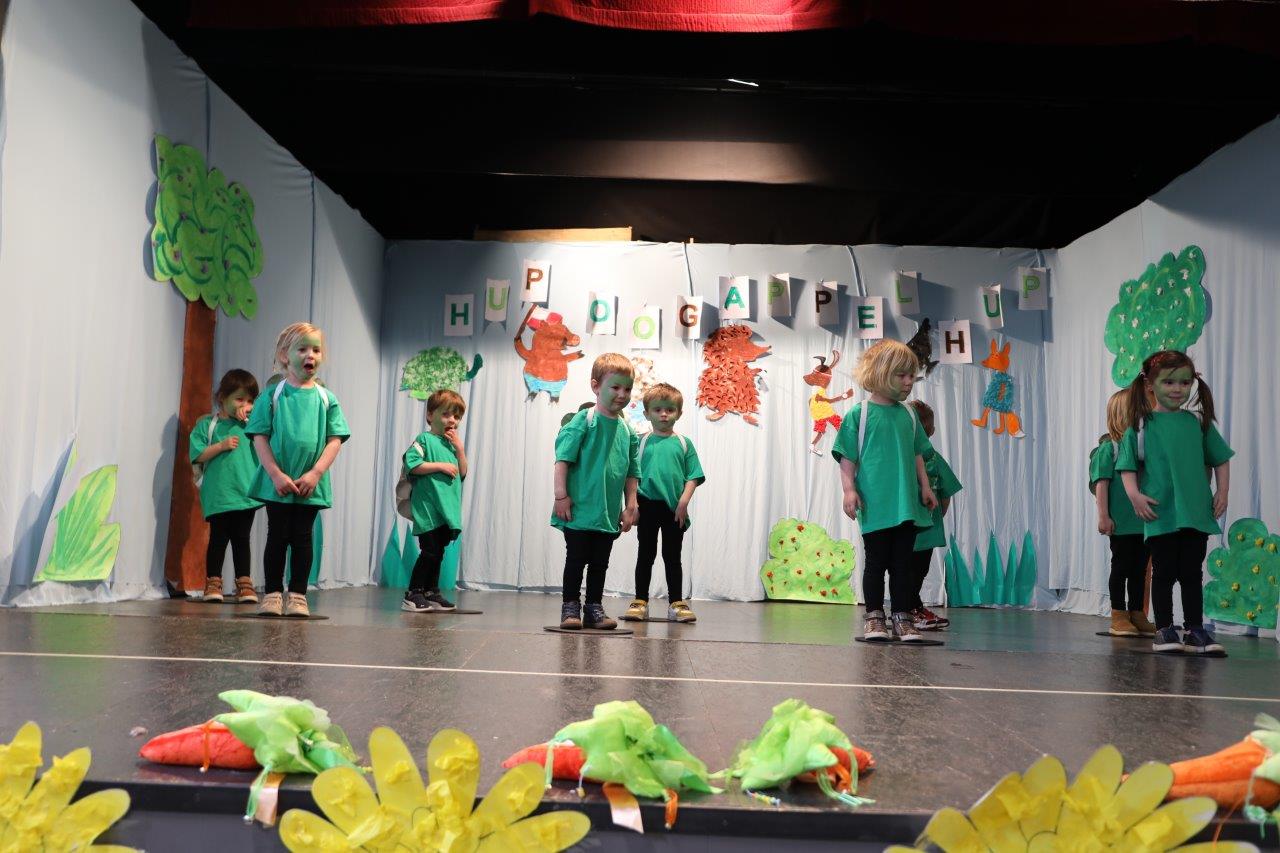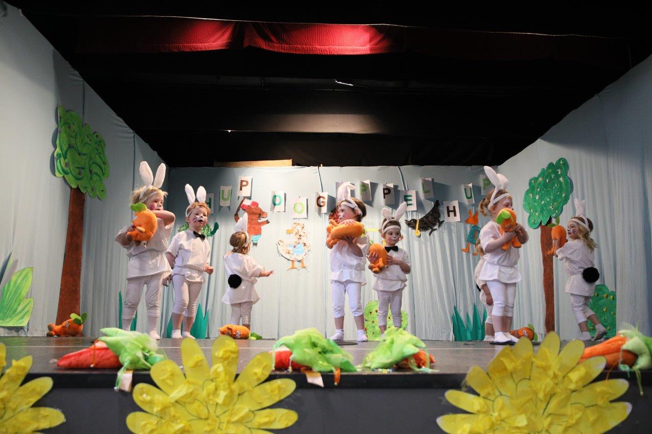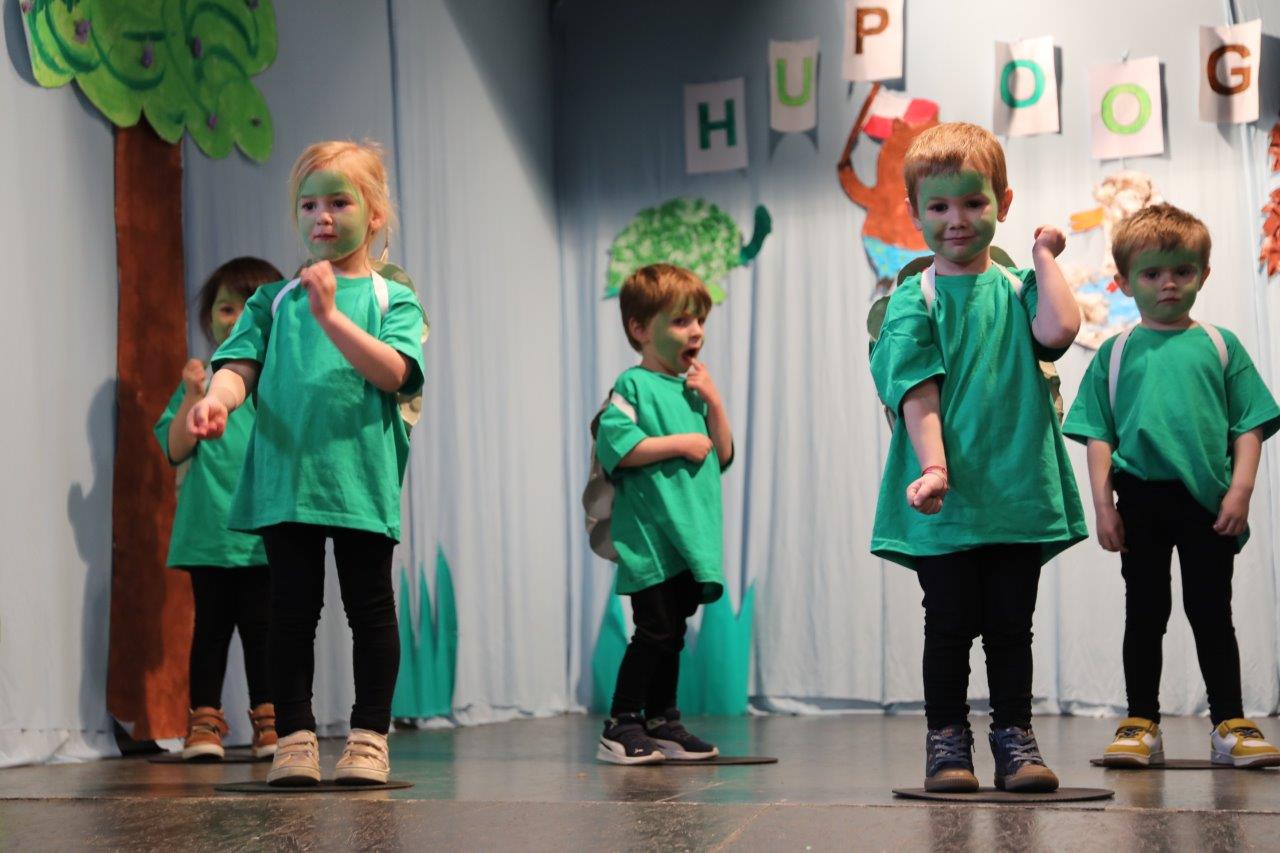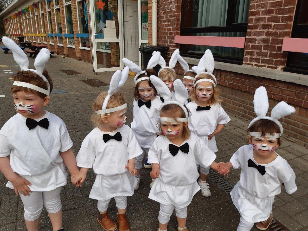 De peuters openden de voorstelling als schattige haasjes, die aan het turnen gingen.