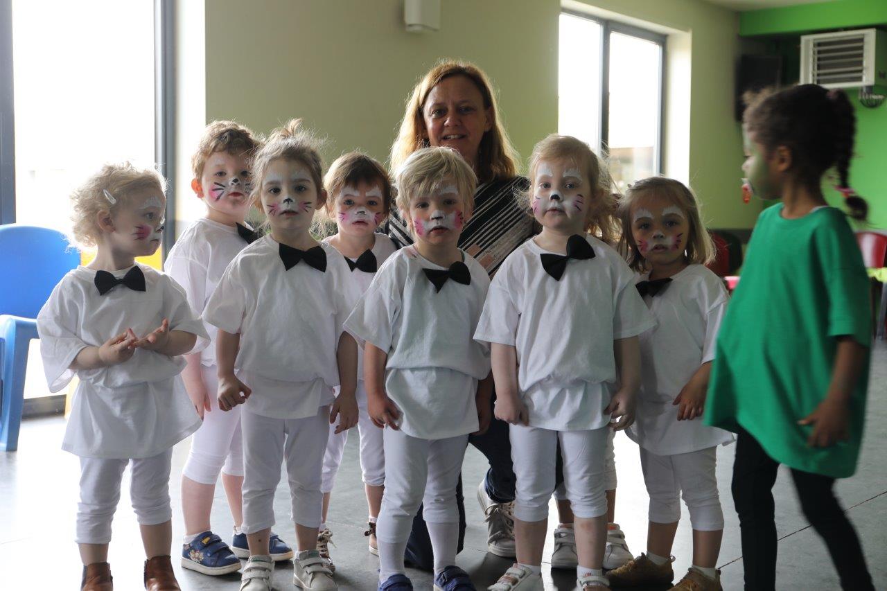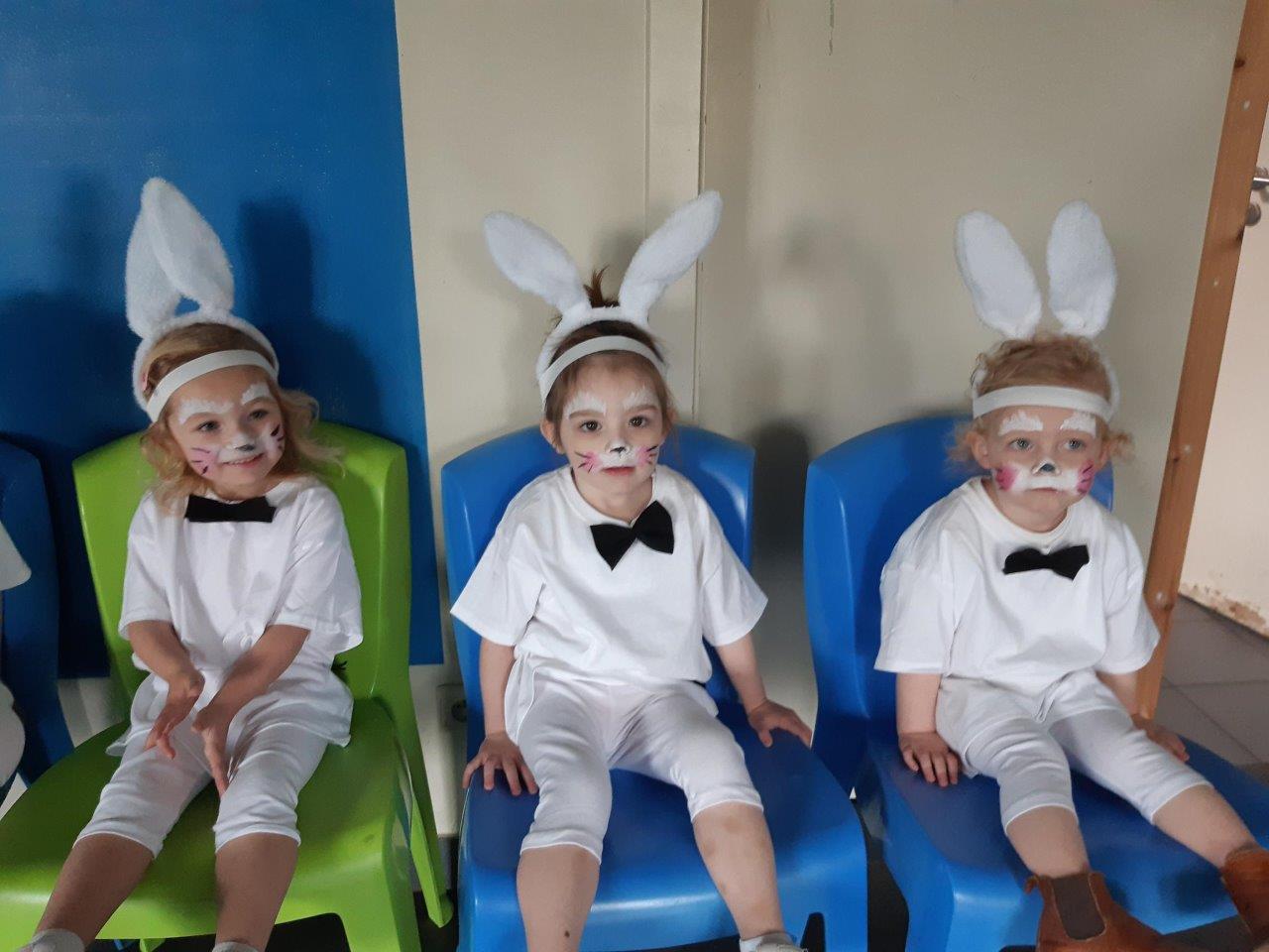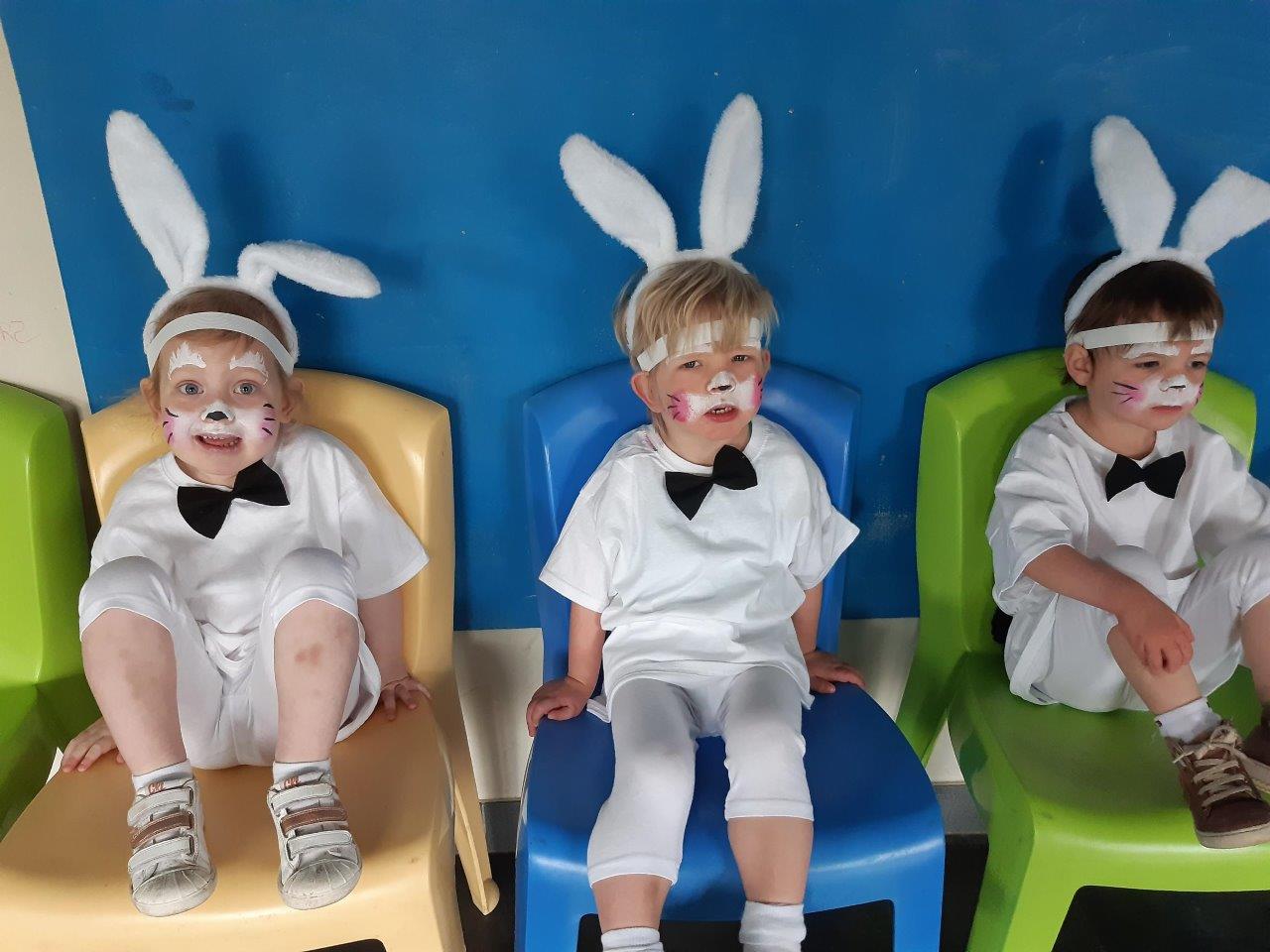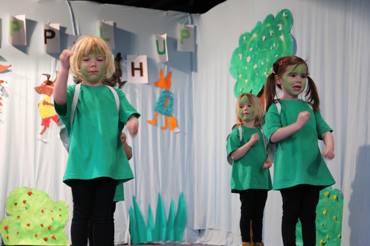 De peuters openden de voorstelling als schattige haasjes, die aan het turnen gingen.