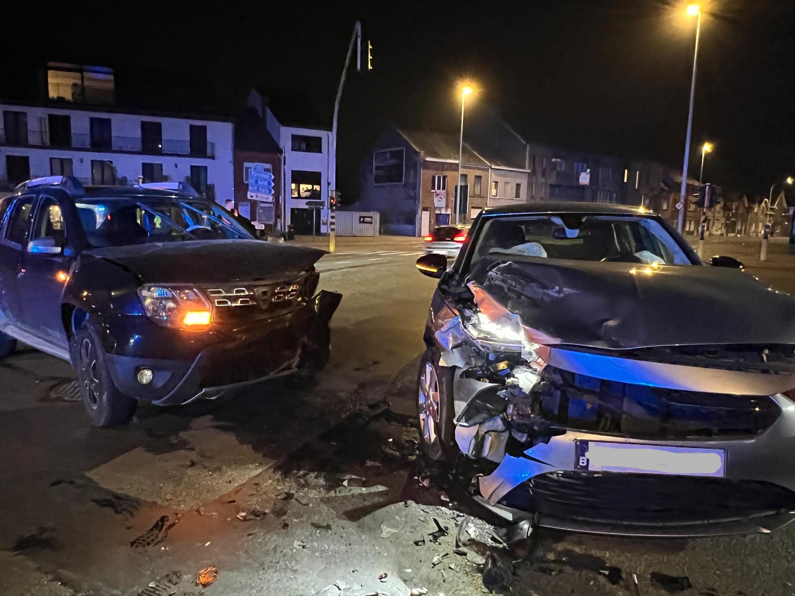 Een Dacia kwam rond 21 uur vanuit de Brusselstraat en wou rechtdoor rijden richting Edingsesteenweg/N255. Vanaf de Edingsesteenweg kwam een Opel aangereden, die op hetzelfde moment linksaf wou naar de Leopoldlaan/N8. Beide wagens botsten op elkaar.