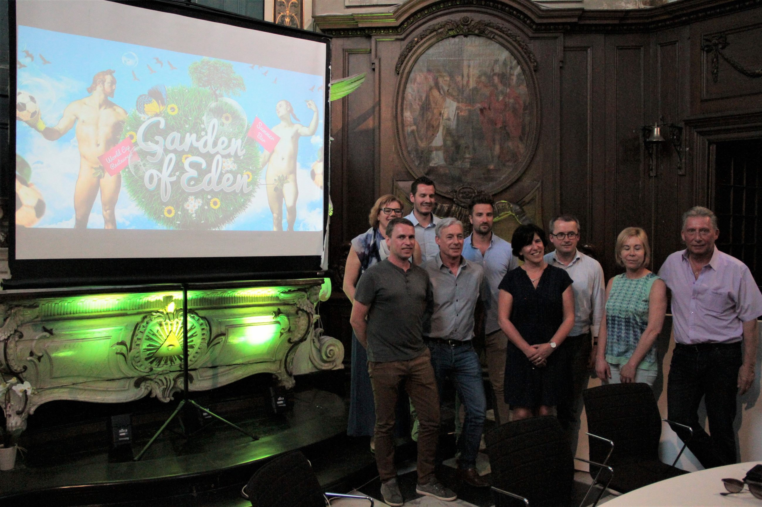 #Ninove – Hét Ninoofse zomerproject rond het WK-voetbal werd zopas voorgesteld door de organisatoren Veaudeville, Schepen van sport en feestlijkheden Marc Torrekens, Schepen van Cultuur Veerle Cosyns en Burgemeester Tania De Jonge. Het aards paradijs verrijst in het centrum van Ninove. Van 14 juni tot en met 15 juli wordt de ervaringssite van ‘Garden of Eden’ the place to be van de ruime omgeving, de naam verwijst naar Eden Hazard. Het WK voetbal volgen op het grootste scherm van de regio? Genieten van een lekker pop up restaurant? Chillen en feesten in een zomerbar? Een event meepikken? Beleef het allemaal in Ninove deze zomer!