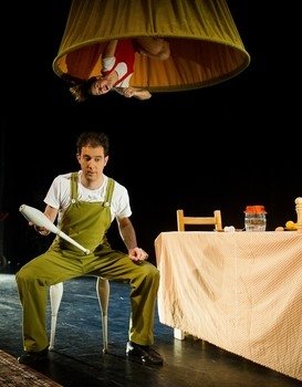 Het Spaanse duo Cia Maintomano zoekt het op sommige momenten al even hoog. Ontzagwekkende evenwichtskunsten met houten voorwerpen, messenwerpen, ‘geometrische acrobatie’, balanceren, jongleren met grote objecten en een flinke dosis humor: in ‘Ekilibuá’ smelt het allemaal wonderbaarlijk samen.