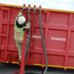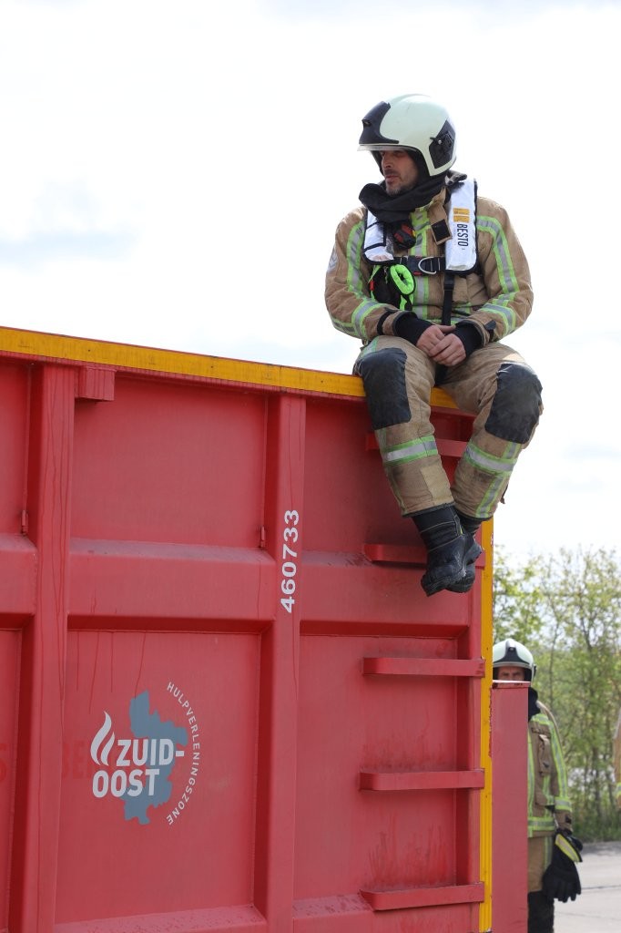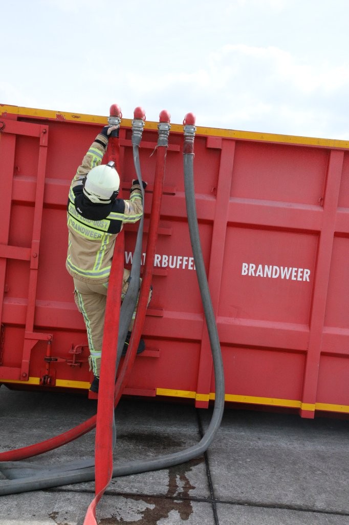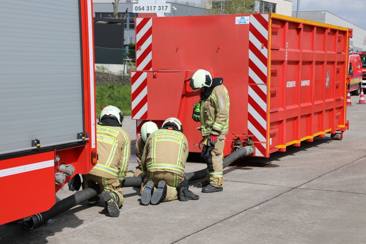 Sergeant Davy Van Goethem van de brandweerzone Zuid-Oost legde ons de technische aspecten uit van de oefening, die vooral was gericht om de waterbuffer van 4.400 liter voldoende gevuld te houden om een brand van die omvang te kunnen bestrijden. Dat gebeurde door de inzet van een zestal citernewagens, die zowel van de hydranten als uit de Dender water oppompten en aanvoerden. De inzet op het terrein van andere blusmiddelen en medische interventieploegen was vandaag niet aan de orde, maar nu al oogde deze ontplooiing hoe dan ook indrukwekkend.