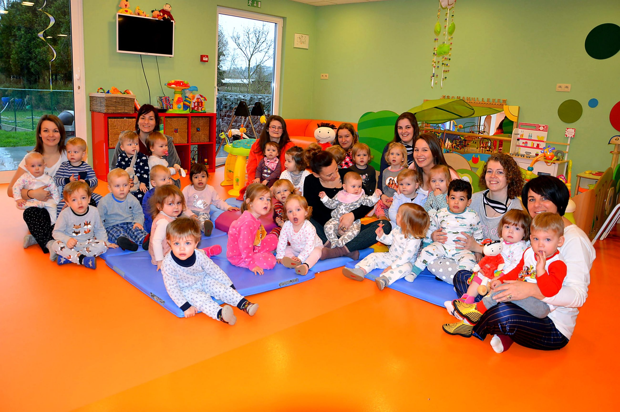 Ook het kinderdagverblijf ‘Schanulleke’ vroeg aan de ouders om hun kindjes voor 1 dag in pyjama te laten komen. Zoals jullie kunnen zien is de vraag massaal opgevolgd.