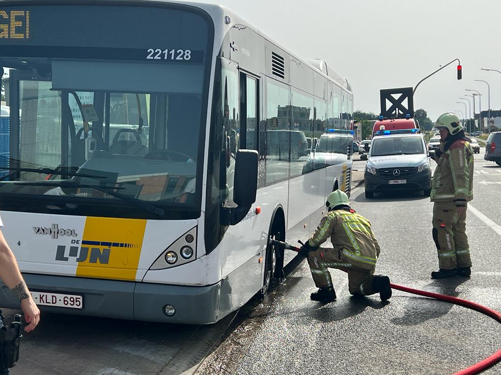 De brandweer van de hulpverleningszone Zuid-Oost kreeg de oproep rond 9.45 uur binnen. Wellicht door een vastgelopen rem was het linkervoorwiel van een Lijnbus verhit geraakt en had het vuur gevat.