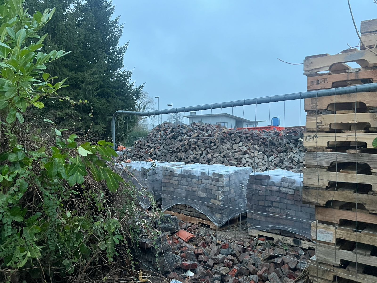 Bouwvakkers waren daar al van vroeg in de ochtend bezig met het opkuisen en recupereren van de bakstenen om die nadien op paletten te sorteren voor een tweede leven, voornamelijk gebruikt in de restauratie en de renovatie van gebouwen. Om zich wat op te warmen, hadden ze binnenin het restant van het slooppand een vuurtje aangelegd in een ton.