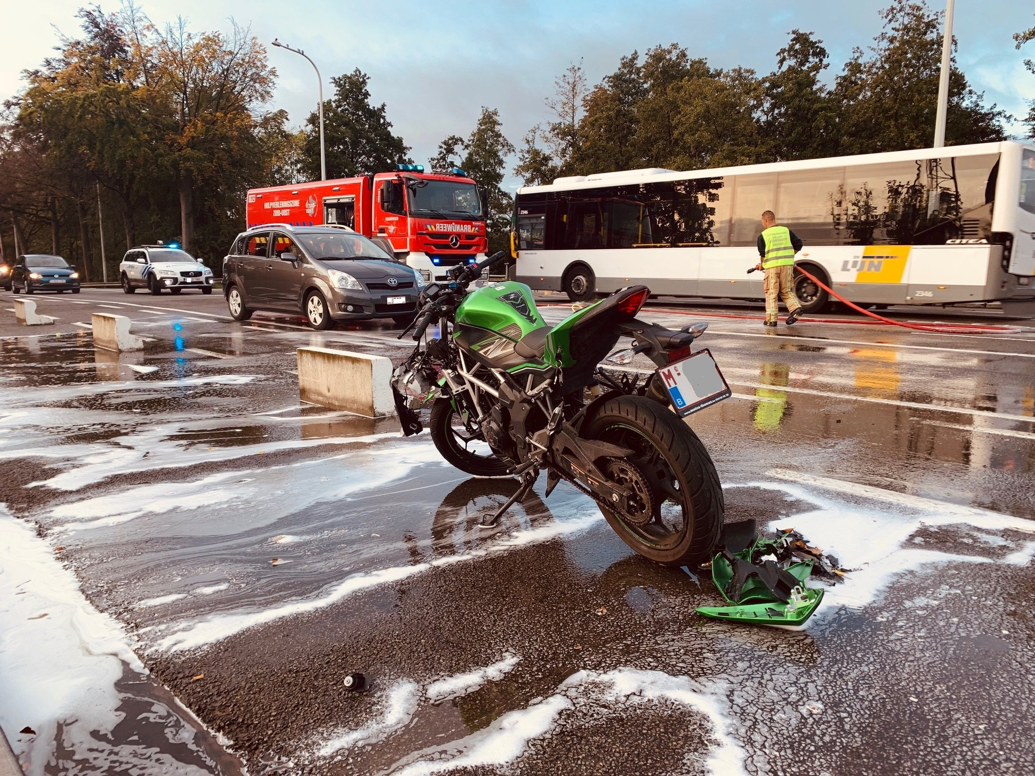De motorrijder raakte lichtgewond. De brandweer kwam ter plaatse om de baan te reinigen, omdat de motor olie verloren had. De verkeershinder bleef beperkt.