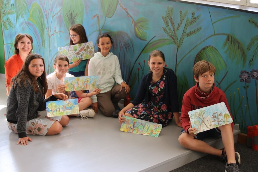 Jungle-muurschildering in de jeugdbib door leerlingen Academie voor Beeldende Kunst Ninove