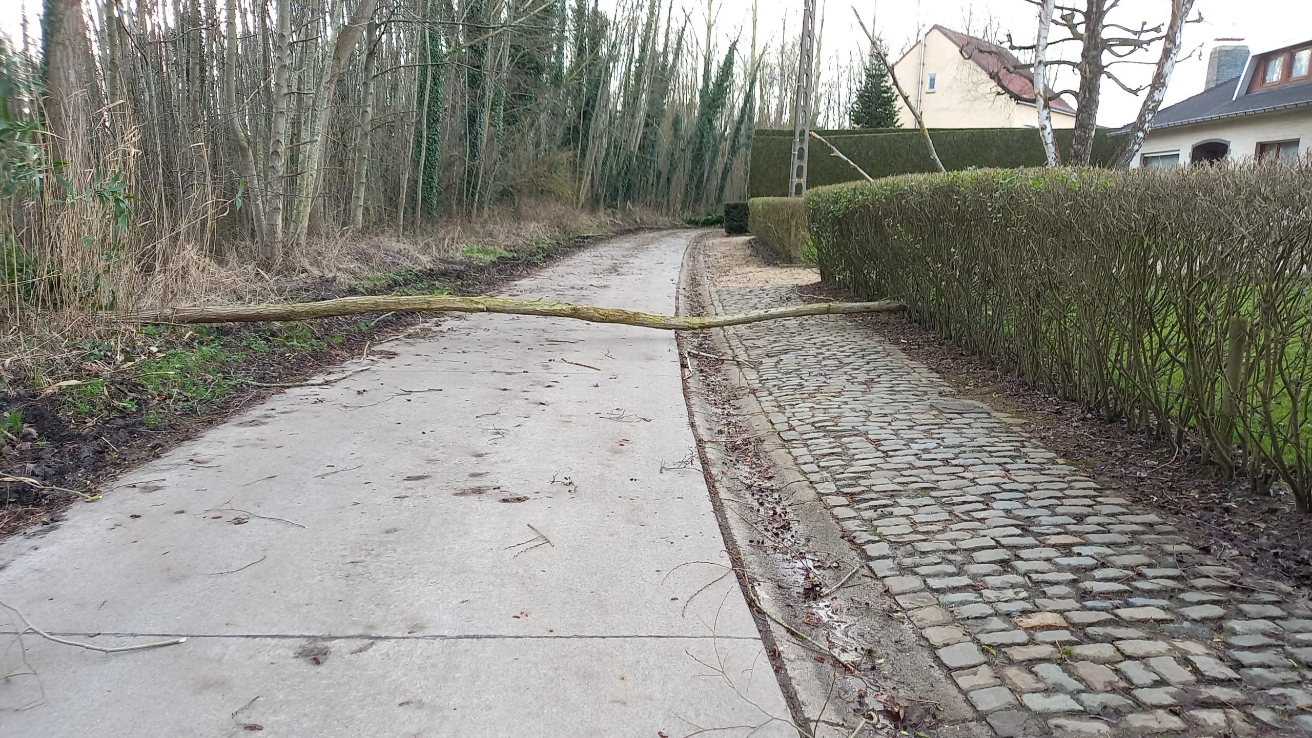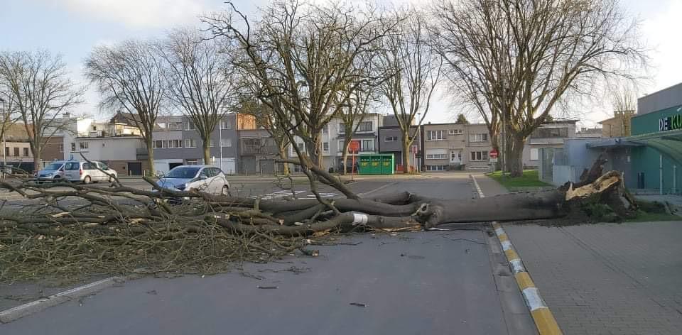 Hierbij een aantal schadegevallen; uiteraard onvolledig door de omvang van de stormschade over het hele grondgebied: gaande van weggevlogen trampolines tot geknakte bomen.