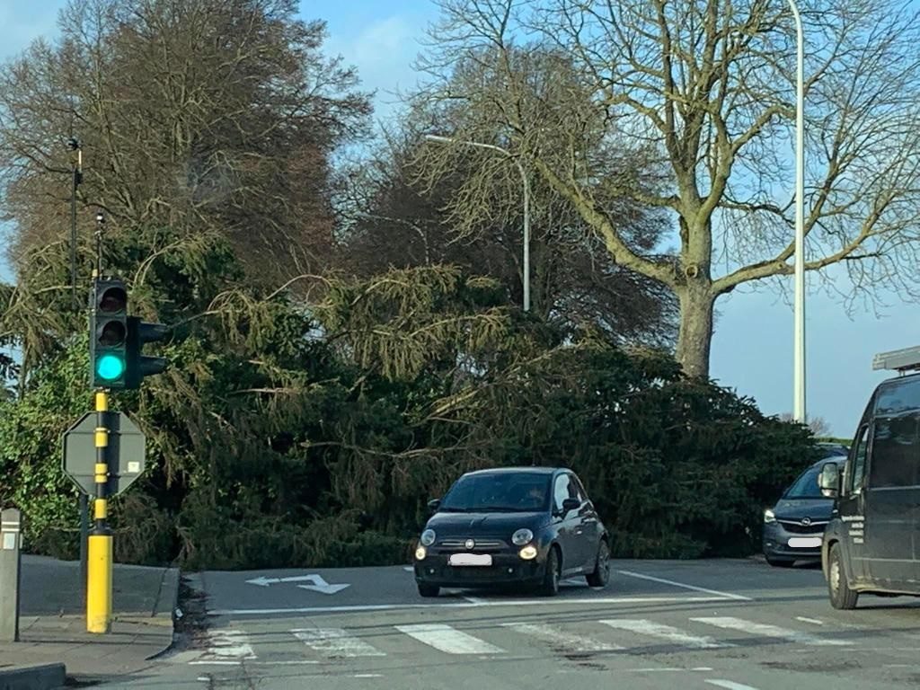 Het kruispunt De Kalvaar op de N8/N460 was richting Aspelare versperd toen een zware boom over de weg was gevallen.