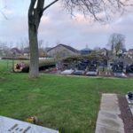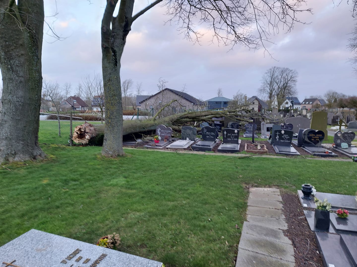 Op het kerkhof belandde een afgeknakt exemplaar op een aantal zerken.