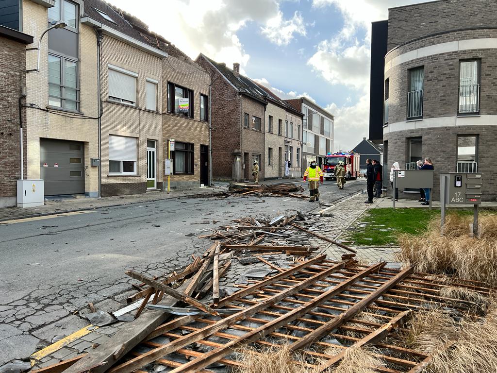 Op Preulegem had een windstoot de helft van een dak volledig weggeblazen. De brokstukken kwamen op de straat terecht en veroorzaakten ook schade aan de geparkeerde wagens.