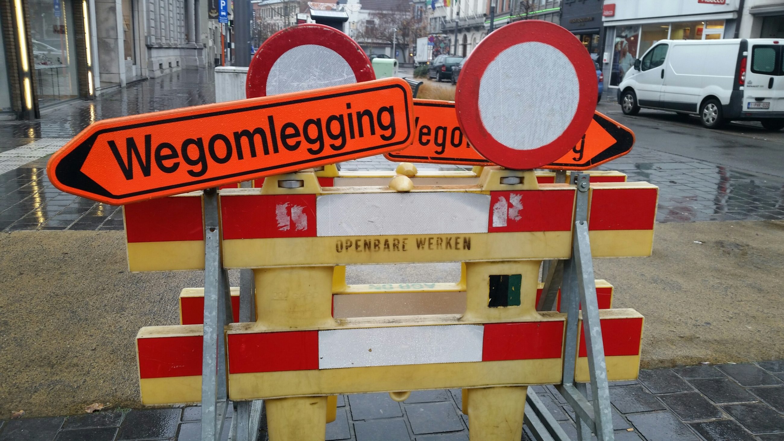 Er is een verminderde doorstroming in één richting. Fietsers en voetgangers hebben doorgang, de handelaars zijn bereikbaar.