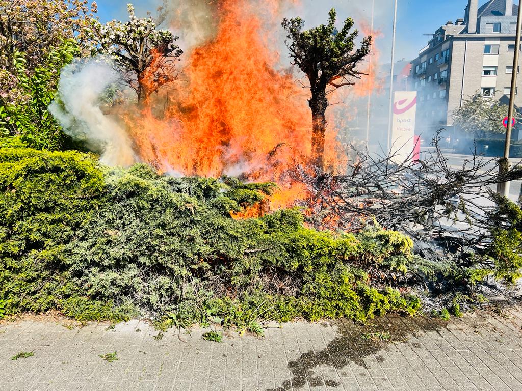Aan de parking ter hoogte van De Post en het vaccinatiecentrum was een onderhoudsploeg van de technische dienst onkruid aan het wegbranden. Rond 11 uur vatten de struiken en de bomen echter vuur.