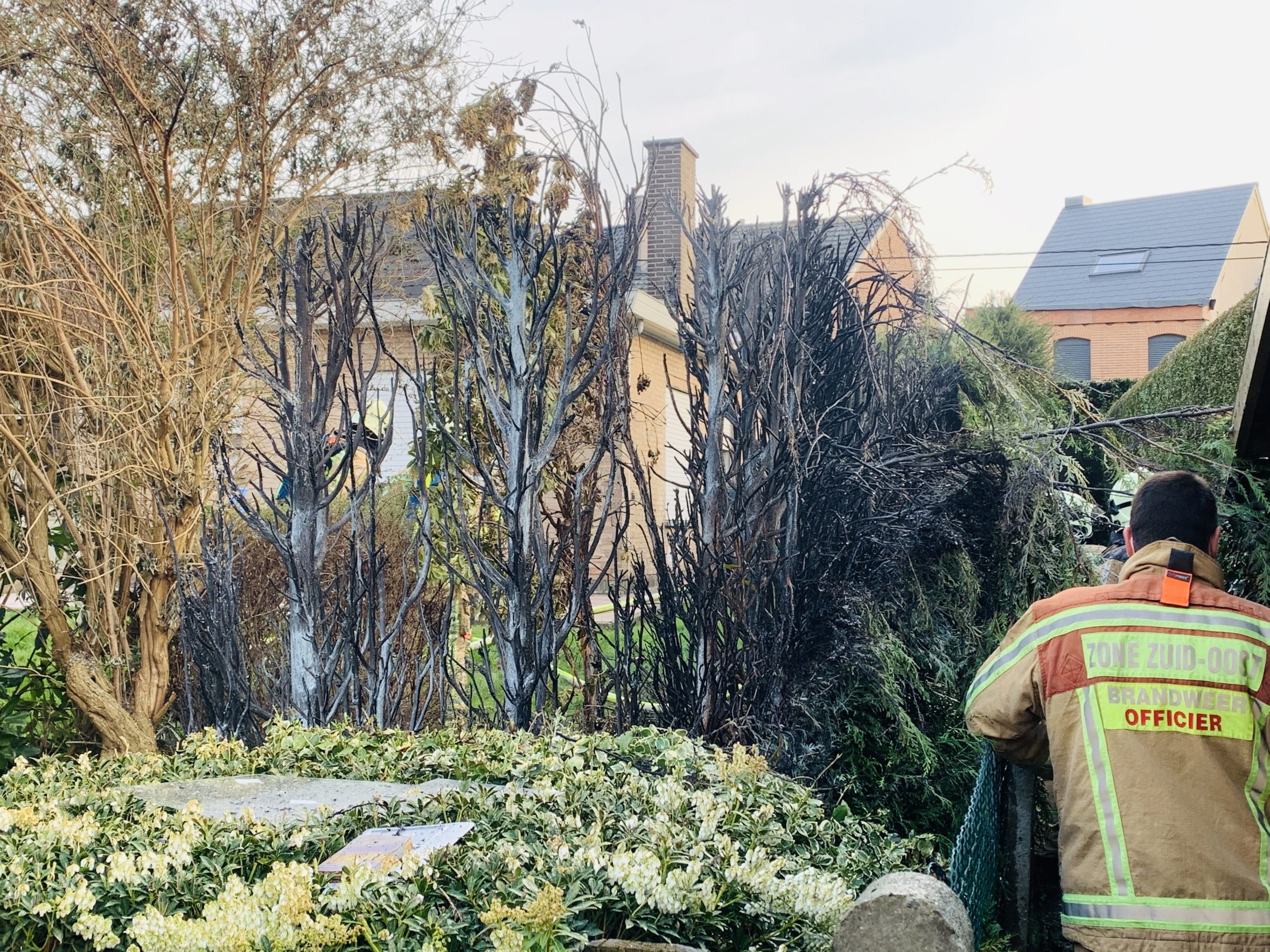 Het droog materiaal vatte echter vuur en stak op korte tijd ook de coniferen aan. De brandweer was snel ter plaatse en kon het onheil en de schade beperken. Niemand raakt gewond.