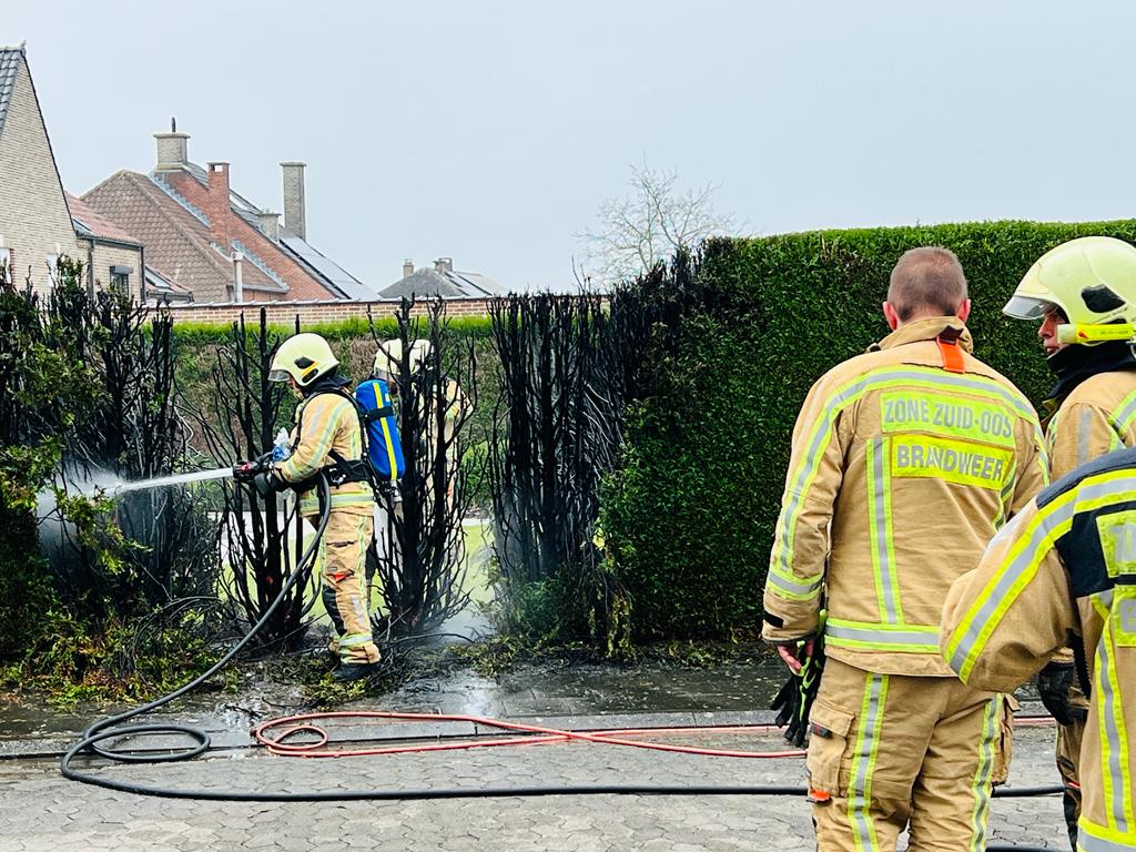 NINOVE – De brandweer van de hulpverleningszone Zuid-Oost kreeg zondagvoormiddag 27 maart rond 11.15 uur een oproep voor een coniferenbrand in de Spechtstraat. De schade bleef beperkt tot een geblakerde haag.