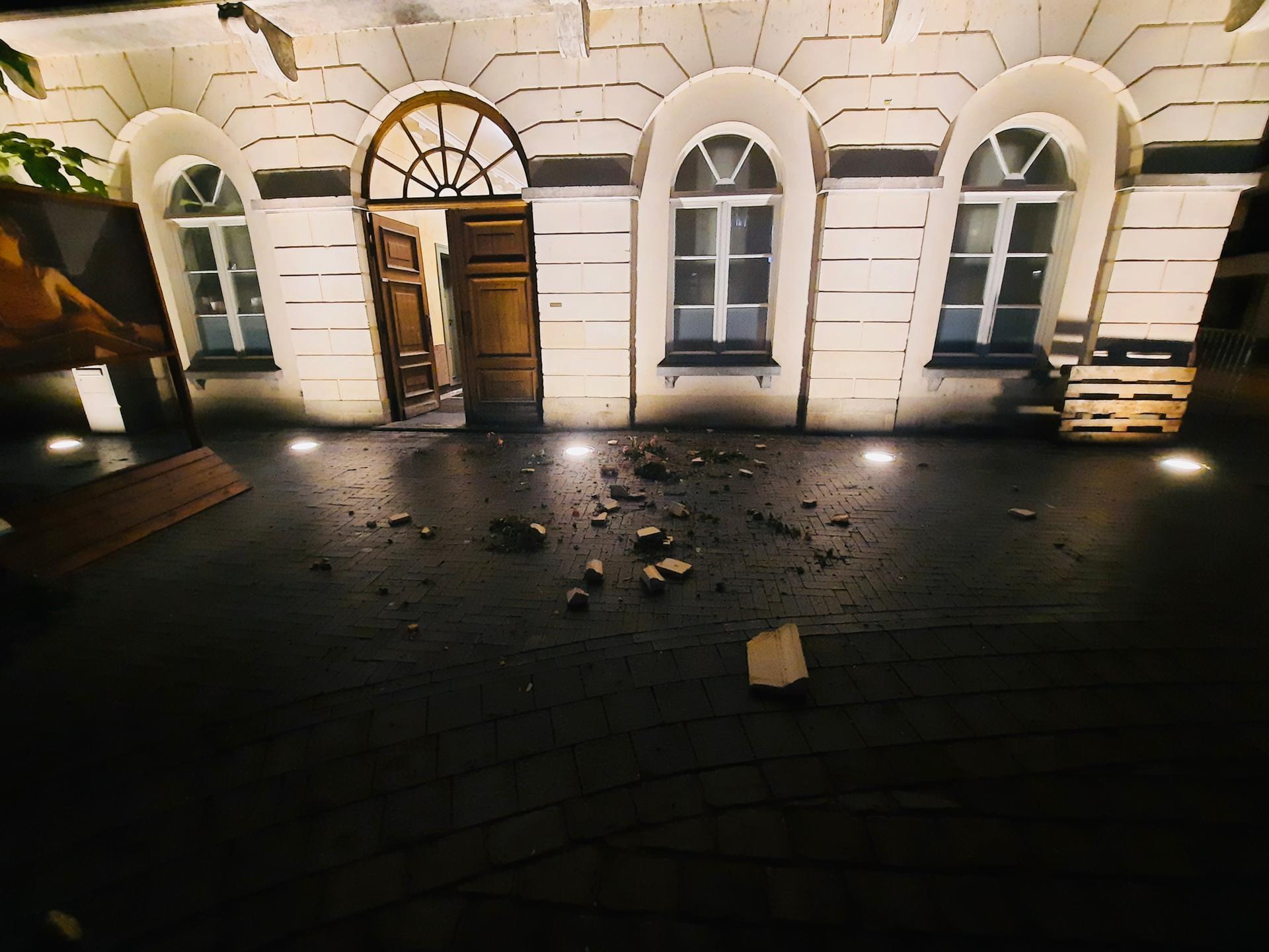 Dat belette niet, dat een deel van de moluren gisterenavond tijdens het hevig onweer loskwam en op straat viel. De technische dienst was onmiddellijk ter plaatse om de brokstukken te ruimen en een veiligheidsperimeter in te stellen.