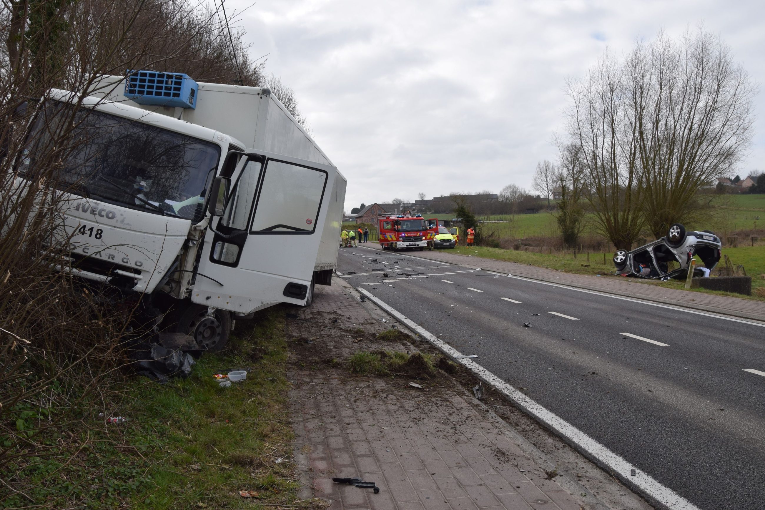 #Vollezelle – Bij een zwaar verkeersongeval langs de Edingsesteenweg in Vollezele raakte woensdagochtend omstreeks 8.45 drie personen ernstig gewond. De vrachtwagen van een firma uit Ninove en de personenauto kwamen met elkaar in botsing op het rechte stuk steenweg