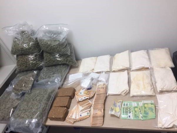 Tijdens deze zoekingen nam de politie € 78.000 cash geld, drugs en grondstoffen om drugs te produceren in beslag. Het ging onder meer om speed, cocaïne, hasj, cannabis, ketamine, MDMA, GHB en XTC.