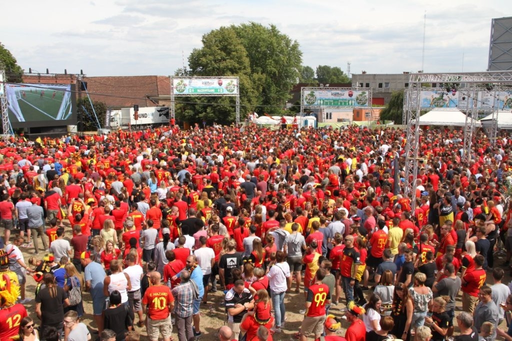#Ninove – Een WK-gek Ninove zag de Rode Duivels schitteren in hun match tegen Tunesië. De Garden of Eden was volledig volgelopen met meer dan 2000 toeschouwers om te genieten van een spectakelmatch met maar liefst 7 doelpunten, het werd in België – Tunesië 5-2. De duizenden supporters in het centrum genoten in een blakende zon van een schitterende namiddag topvoetbal, niet enkel op de OCMW-site met het reuzescherm maar ook in de talloze café’s in het centrum waren supporters samengekomen om de Duivels te zien winnen. Door de massa volk werd de Burchtstraat afgesloten voor het verkeer zodat ook aan de café’s de veiligheid gegarandeerd was voor de supporters op straat. (GNE) Foto’s Giovanni Neckebroeck