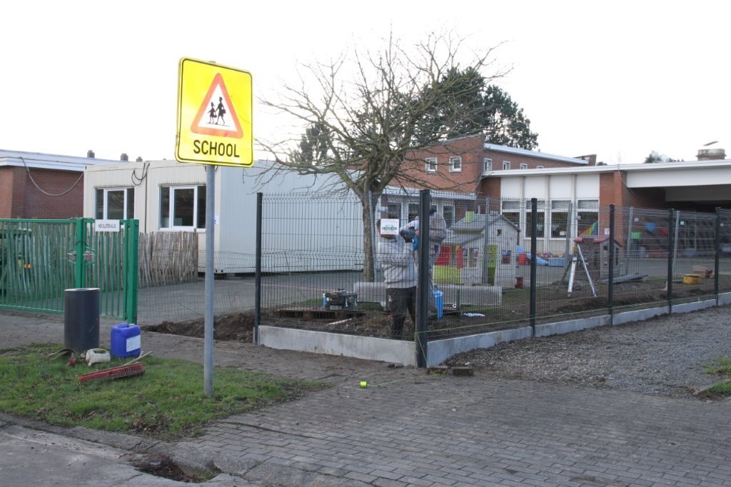#Ninove – Momenteel is een aannemer in opdracht van de stad Ninove en het schoolbestuur van de Lettertuin gestart met het aanbrengen van een totaal nieuwe omheining rond de volledige site van de basisschool aan de Seringenstraat in wijk de Groeneweg. Nadat de school enkele malen ongewenst bezoek kreeg werd beslist om een deel van de sparren rondom de gebouwen te rooien om zo de zichtbaarheid vanop de straat te verbeteren en de sociale controle te verhogen, tegelijkertijd is er dan gestart met het plaatsen van een stevige omheining die de vorige oude afsluiting moet vervangen. (GN)