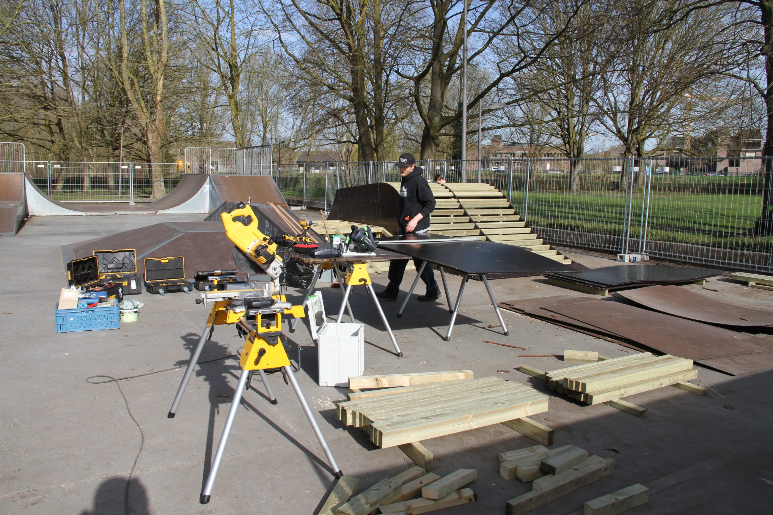 # Ninove -Het skatepark in het stadspark van Ninove was toe aan renovatie en net zoals bij de bouw van het skatepark, worden ook nu jongeren betrokken bij de vernieuwing en de aanpassingswerken ervan. Ze staken tussen 5 en 13 april 2018 de handen uit de mouwen om, onder begeleiding en coördinatie van de firma Hectik Skateramps, de werken zelf uit te voeren. Tijdens de werken is het skatepark niet toegankelijk, maar de werken zitten op schema waardoor vanaf het einde van de paasvakantie iedereen er terug welkom is om het vernieuwde park uit te proberen.Het skatepark in het Ninoofse stadspark staat er sinds 2009. Naast het regelmatig onderhoud en de instandhoudingswerken de afgelopen jaren, werd in de planning ook voorzien om vernieuwingswerken uit te voeren. Zeker gezien het intens gebruik van het park, was de vernieuwing van een aantal van de toestellen geen overbodige luxe. Foto’s Giovanni Neckebroeck
