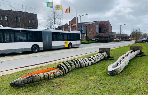 Op de Centrumlaan stond sinds woensdag het kunstwerk ‘boetnaalden’ van Philippe Gouwy in de middenberm opgesteld. Het is de nieuwste versie van het mobiel kunstproject ‘De Sokkel’. De sokkels van die boetnaalden bleken echter niet stevig genoeg verankerd. Beide sculpturen liggen nu tegen de vlakte.