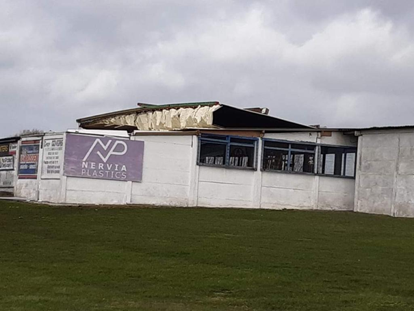 In Okegem is het dak van de kantine van voetbalclub FC Panters losgekomen.
