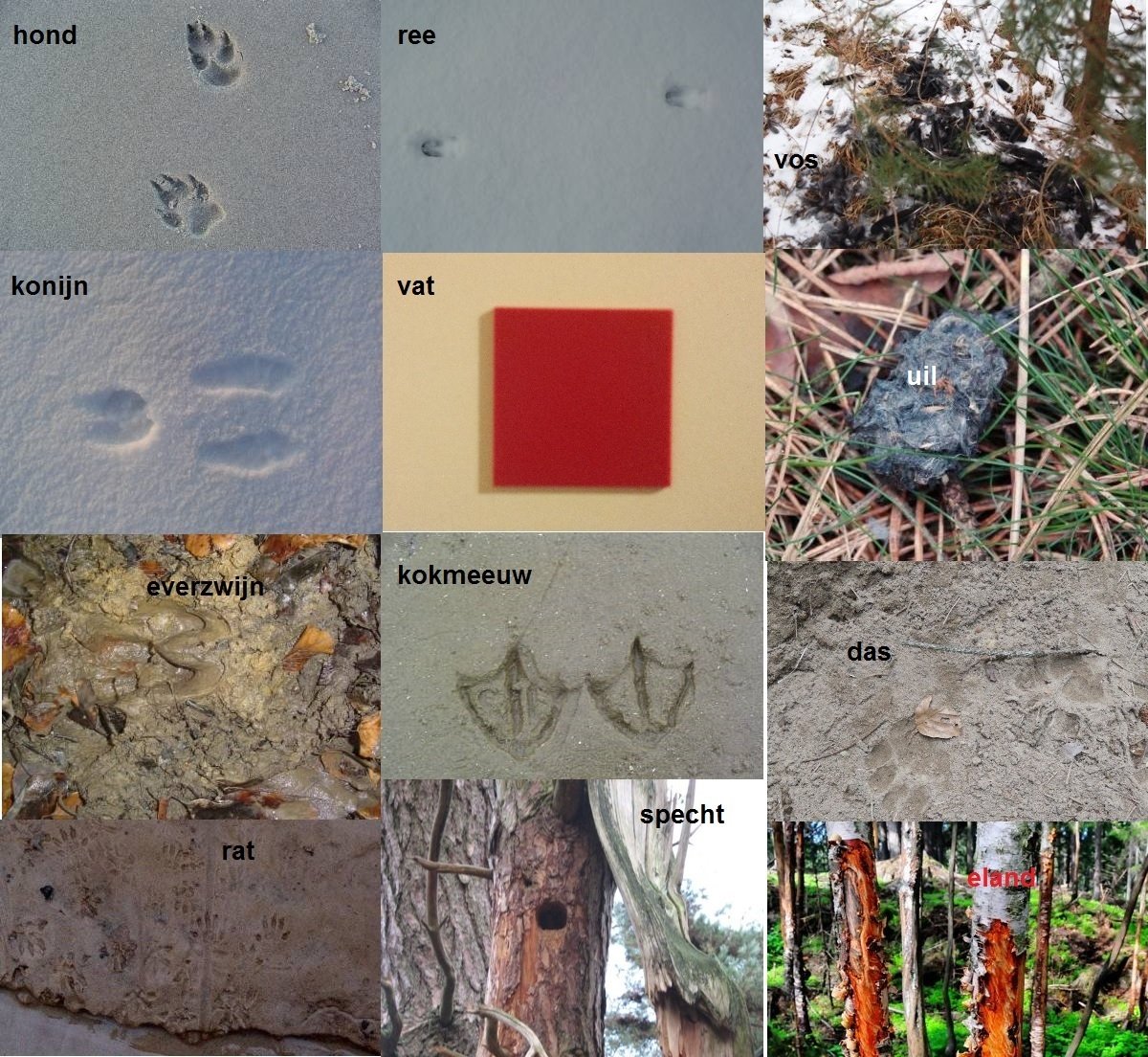 Op de illustratie in bijlage zie je een aantal kenmerkende sporen: pootafdrukken, braakballen, etensresten, enz. Druk de illustratie af, en trek er eens op uit voor een wandeling, met respect voor de natuur: aan de hand van de sporen die je tegenkomt kan je zelf uitzoeken welke soorten allemaal verblijven in de omgeving waar je wandelt.