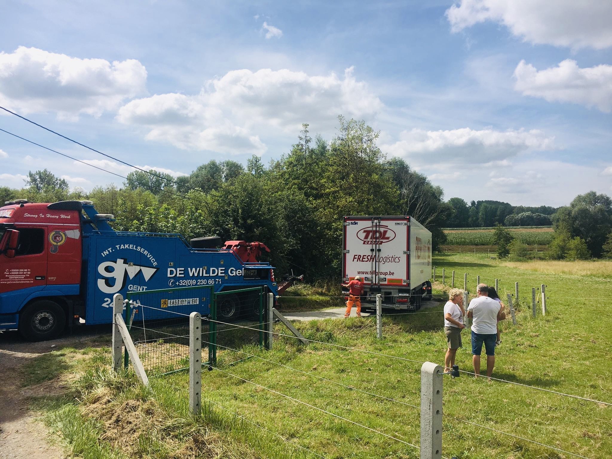 DENDERWINDEKE – Een chauffeur reed zich woensdagvoormiddag 22 juli klem met zijn vrachtwagen. Een takelwagen moest hem bevrijden.