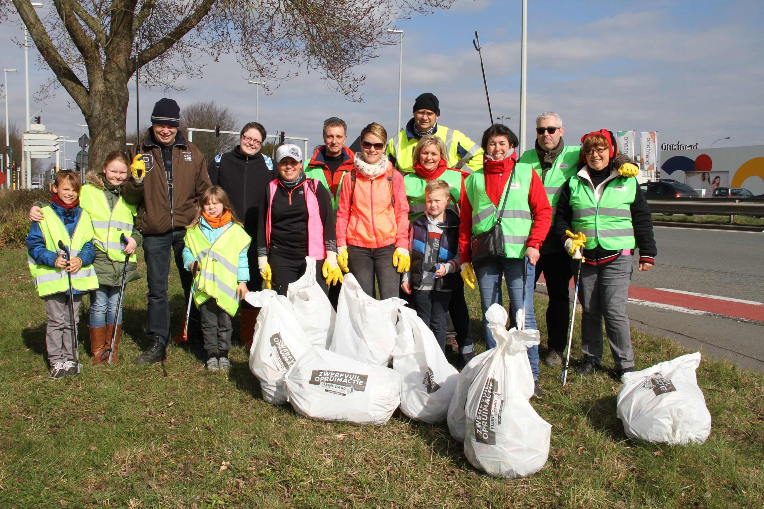 # Ninove – Iedereen kent wel plekjes waar zwerfvuil de omgeving ontsiert, denk maar aan bermen, wandelpaden, straten enz., alles behalve een fraai zicht. Tijdens de week van “De Grote lenteschoonmaak” zetten verschillende vrijwilligers en verenigingen zich in om een stukje openbaar domein op te kuisen, want ondanks het vele werk dat de stadsdiensten verrichten blijft het een gevecht tegen de bierkaai. De Ninoofse Narren namen de handschoen(-en) op en gingen aan de slag. De stad voorzag hen van het nodige materiaal zoals vuilzakken grijptangen, fluohesjes en koffiekoeken om de dag goed te starten. Hun tocht startte aan het station van Ninove en ging via de Fernand Tavernestraat verder langs het fietspad naast de spoorweg tot de visvijvers in Okegem, maar ook de ring werd meegenomen. Het resultaat waren massa blikjes, plastiek, kledij en andere rommel die door mensen werd achtergelaten langs de weg en in de bermen, in totaal werden tientallen zakken gevuld met zwerfvuil. De mensen die dit werk opknapten hopen dat er wat respect getoond wordt voor hun werk, en dat men zijn afval in een vuilnisbak doet ipv het op straat te gooien. Foto’s Giovanni Neckebroeck