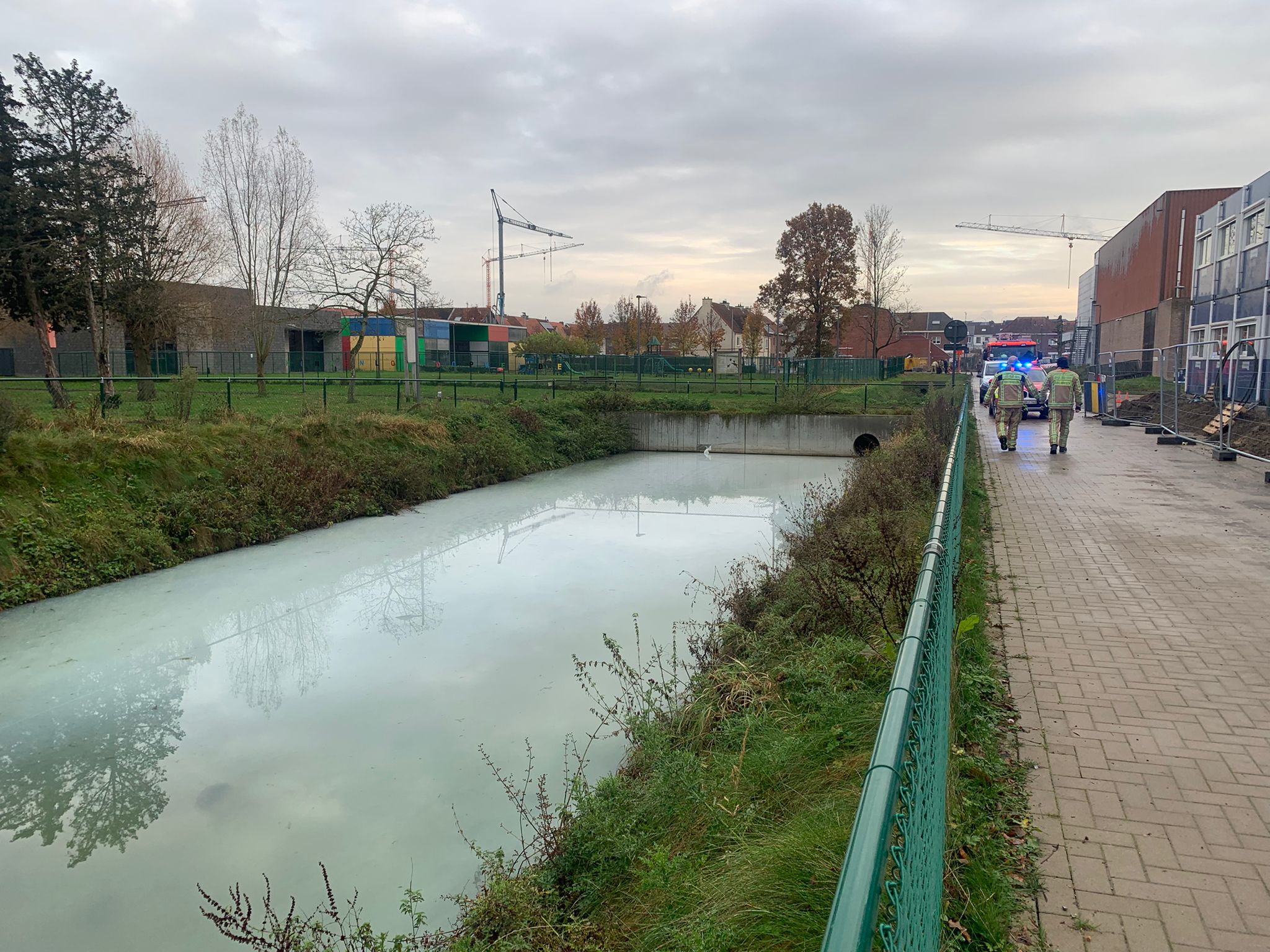 Donderdag 25 november kreeg de brandweer van de hulpverleningszone Zuid-Oost een oproep. Het water in het wachtbekken kleurde gedeeltelijk wit en dat is nog steeds het geval. Omdat het nog niet hoog staat, is er voorlopig geen gevaar, dat het verontreinigde water in de Dender belandt.