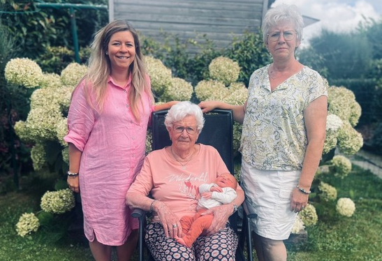 Haar overgrootmoeder Vicky Van Malder (89), oma Monique Leunens (60) en mama Kelsy (33) gingen dus graag samen met Amelia op de foto om dat viergeslacht voor de komende generaties vast te leggen.