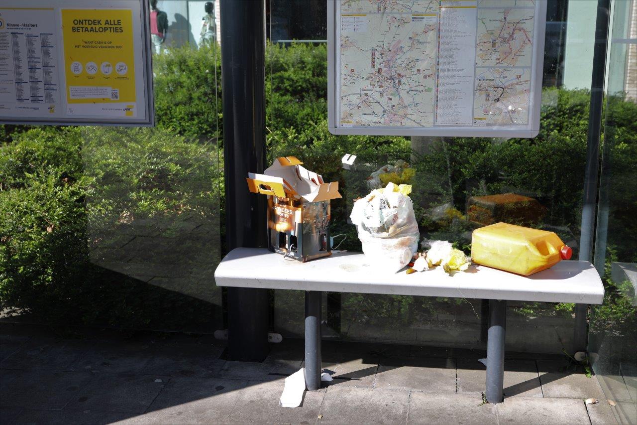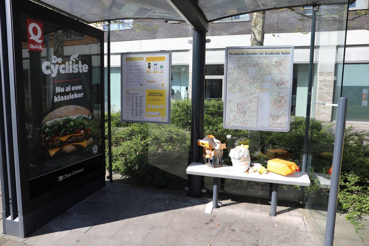 NINOVE – Zaterdagochtend 16 april ontdekten bewoners van de Vuurkruisersstraat een bushokje van de Lijn vol afval.
