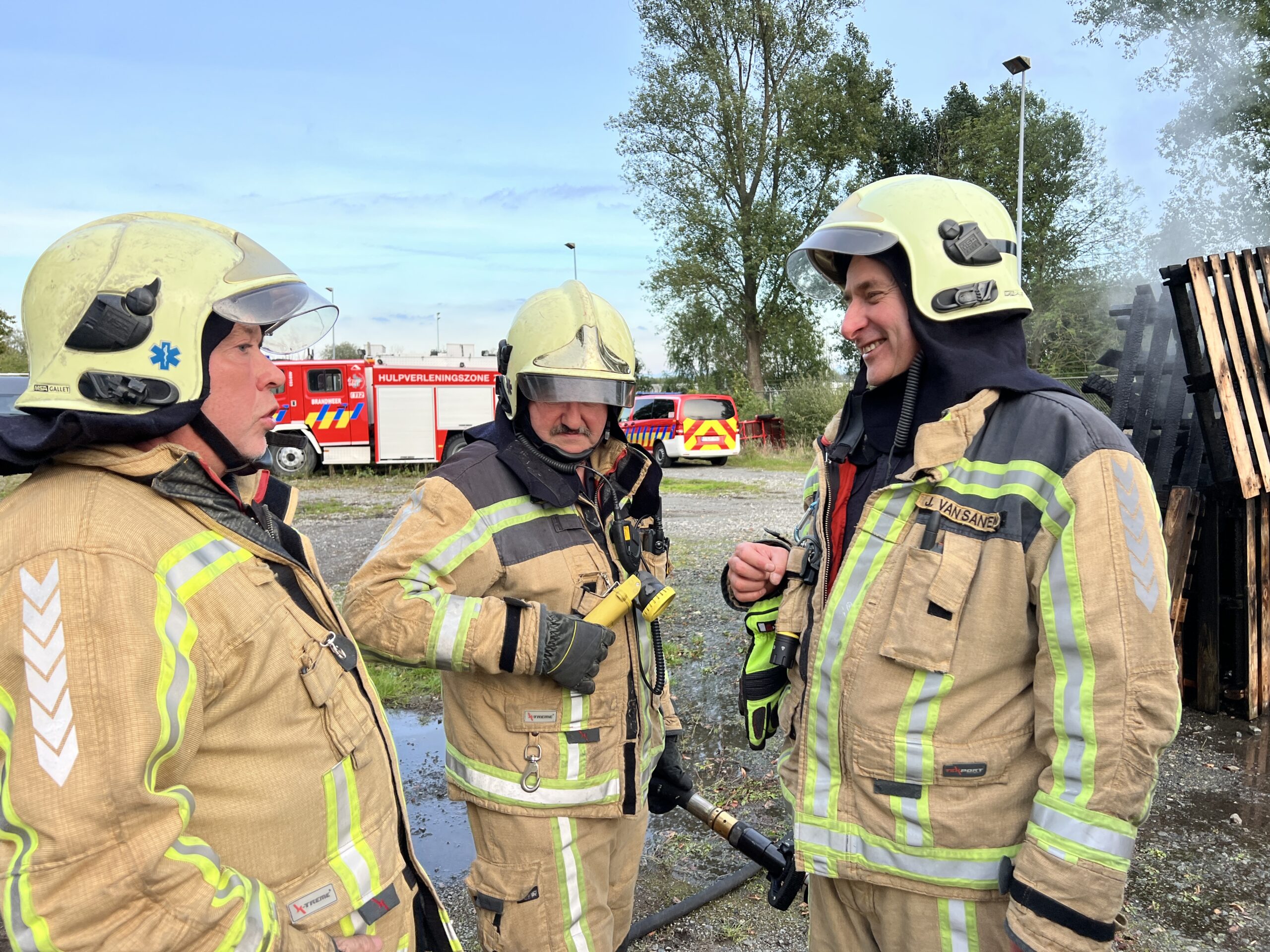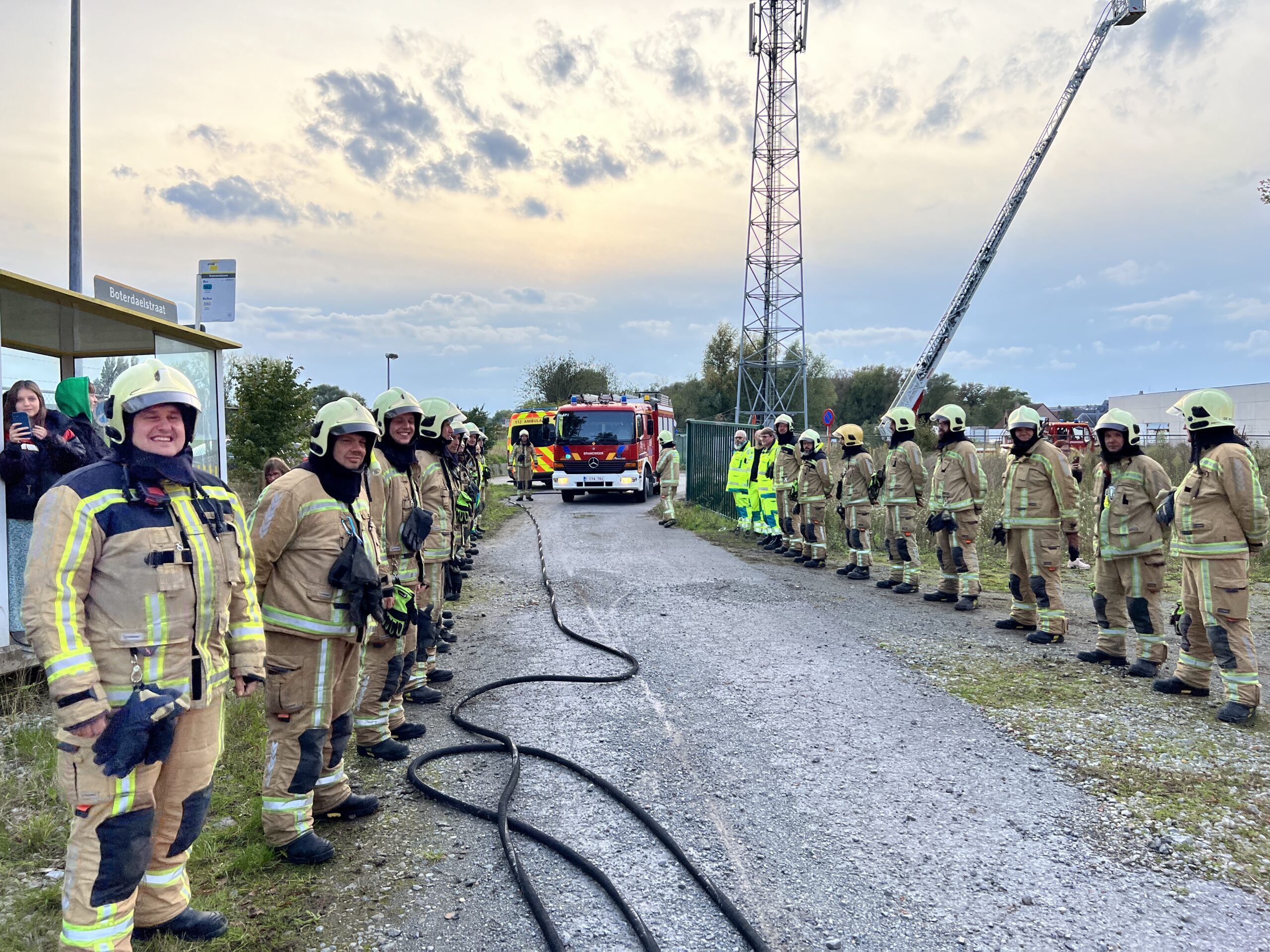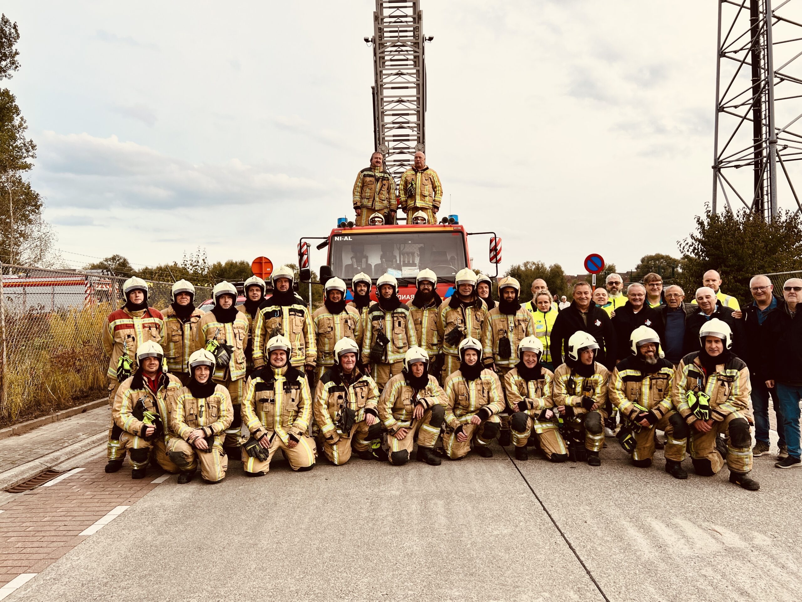 Nadat ze hun laatste brandje aan de Fabrieksstraat hadden geblust, mochten ze samen met hun makkers op de foto.