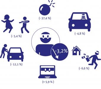 - Fysiek en seksueel geweld in de publieke ruimte zijn met 19 % afgenomen, net als de opzettelijke slagen en verwondingen (-13 %).
