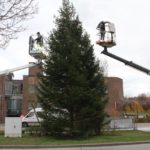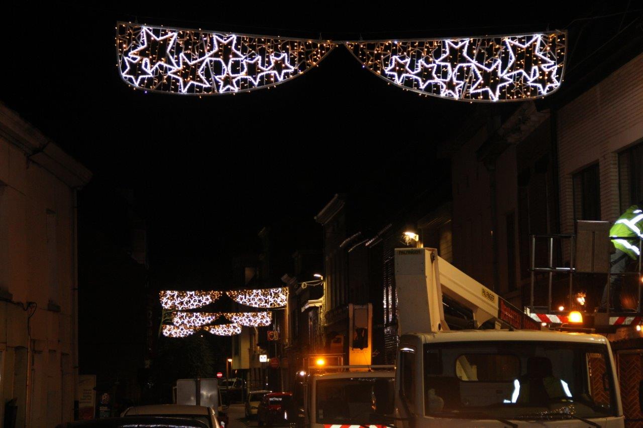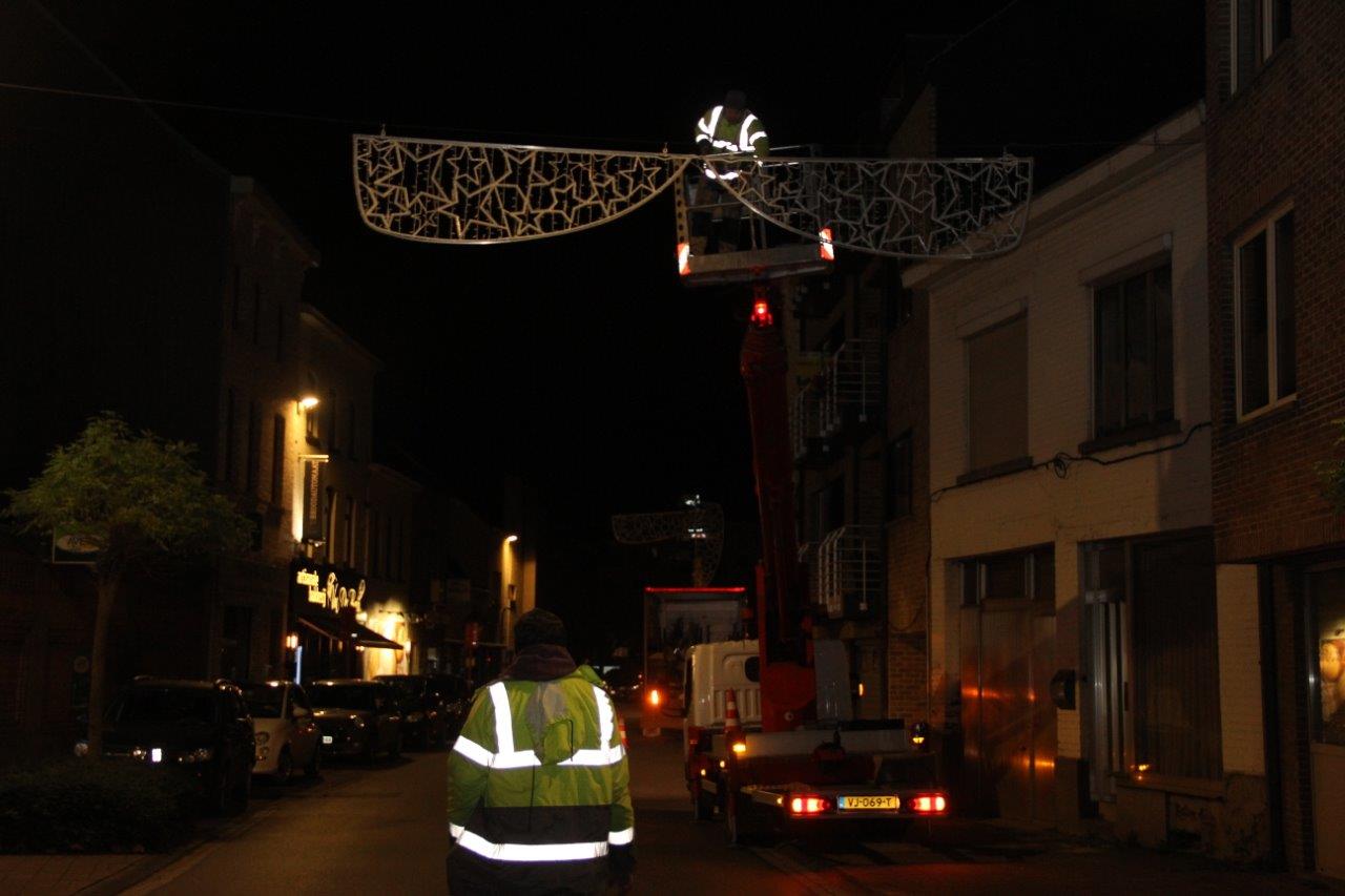 NINOVE – Een gespecialiseerde firma heeft zaterdagavond 5 december de kerstverlichting omhoog gehangen in het centrum. Meer dan 100 nieuwe lichtarmaturen zullen dit jaar zorgen voor een mooie sfeerverlichting in de stad.