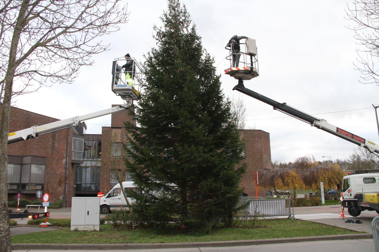 Ook de grote kerstbomen op de Graanmarkt, de Centrumlaan en aan buurthuis Berdam zijn geplaatst en zaterdagnamiddag door de verlichtingsfirma voorzien van ledverlichting.