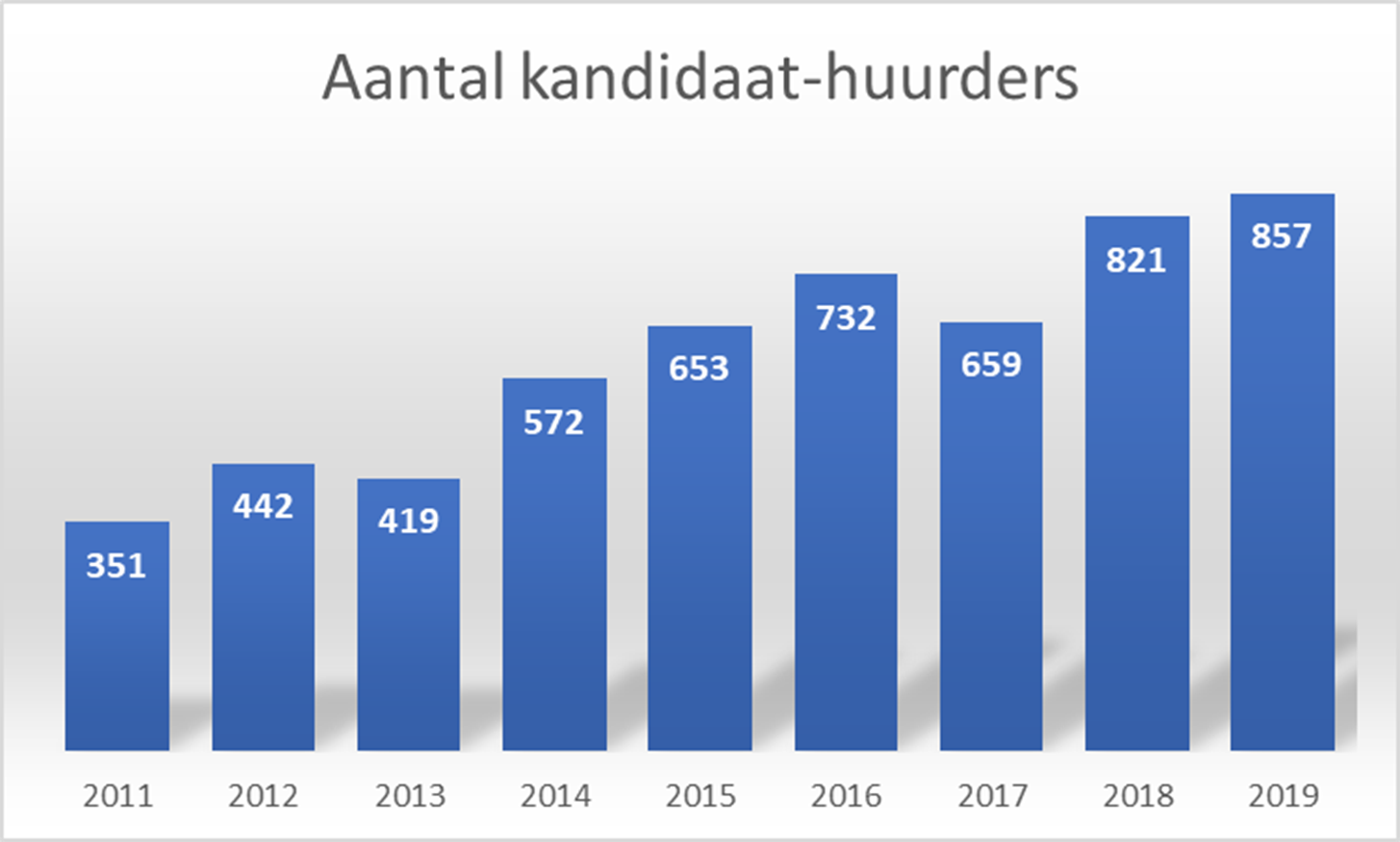 Evaluatie op basis van aantal kandidaat huurders voor een sociale woning per voorkeurgemeente.